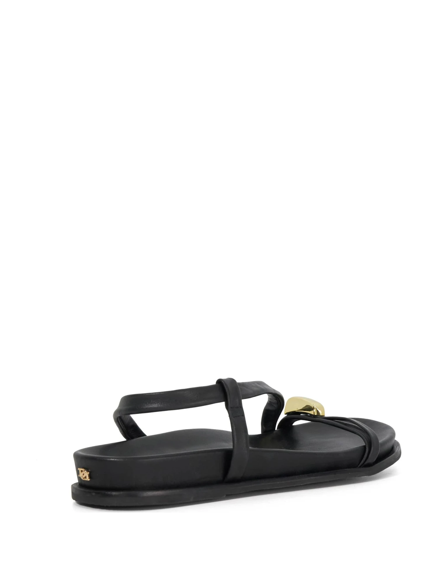 These flat leather sandals from Dune London are both a comfortable and stylish choice. The strappy upper has a slip-on style for easy wear. Eye-catching metallic detailing on the strap provides a statement finish.