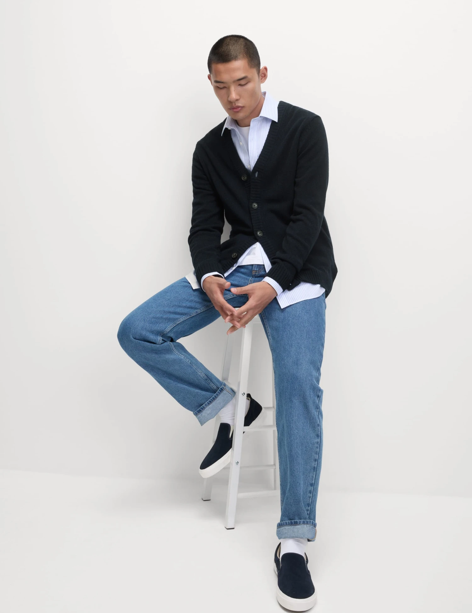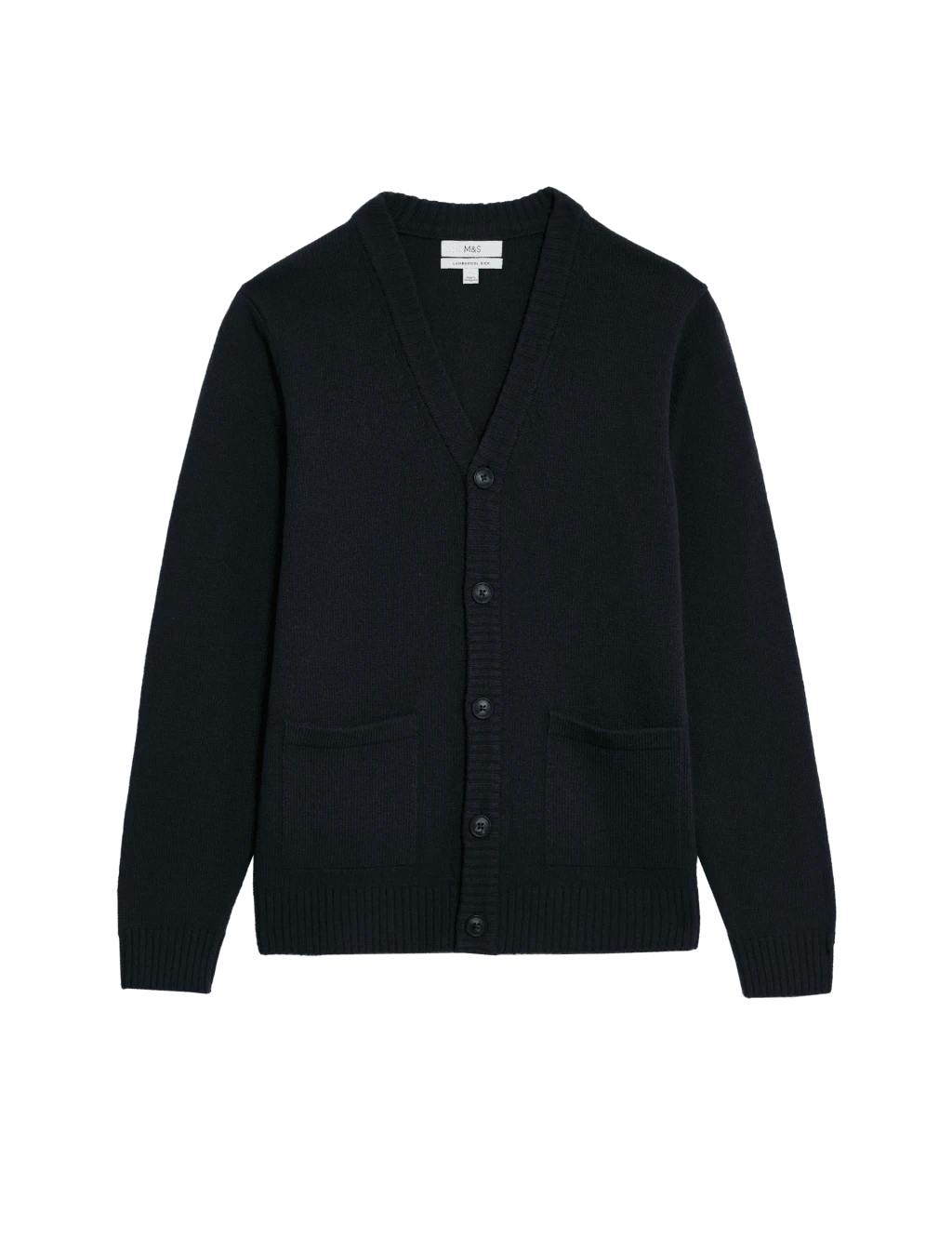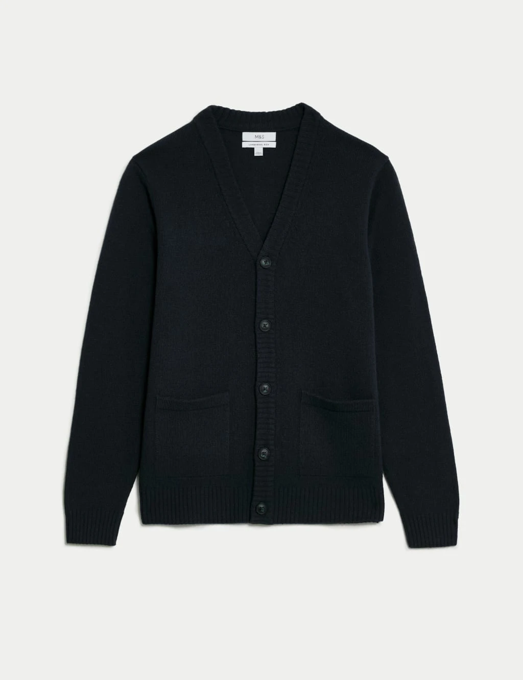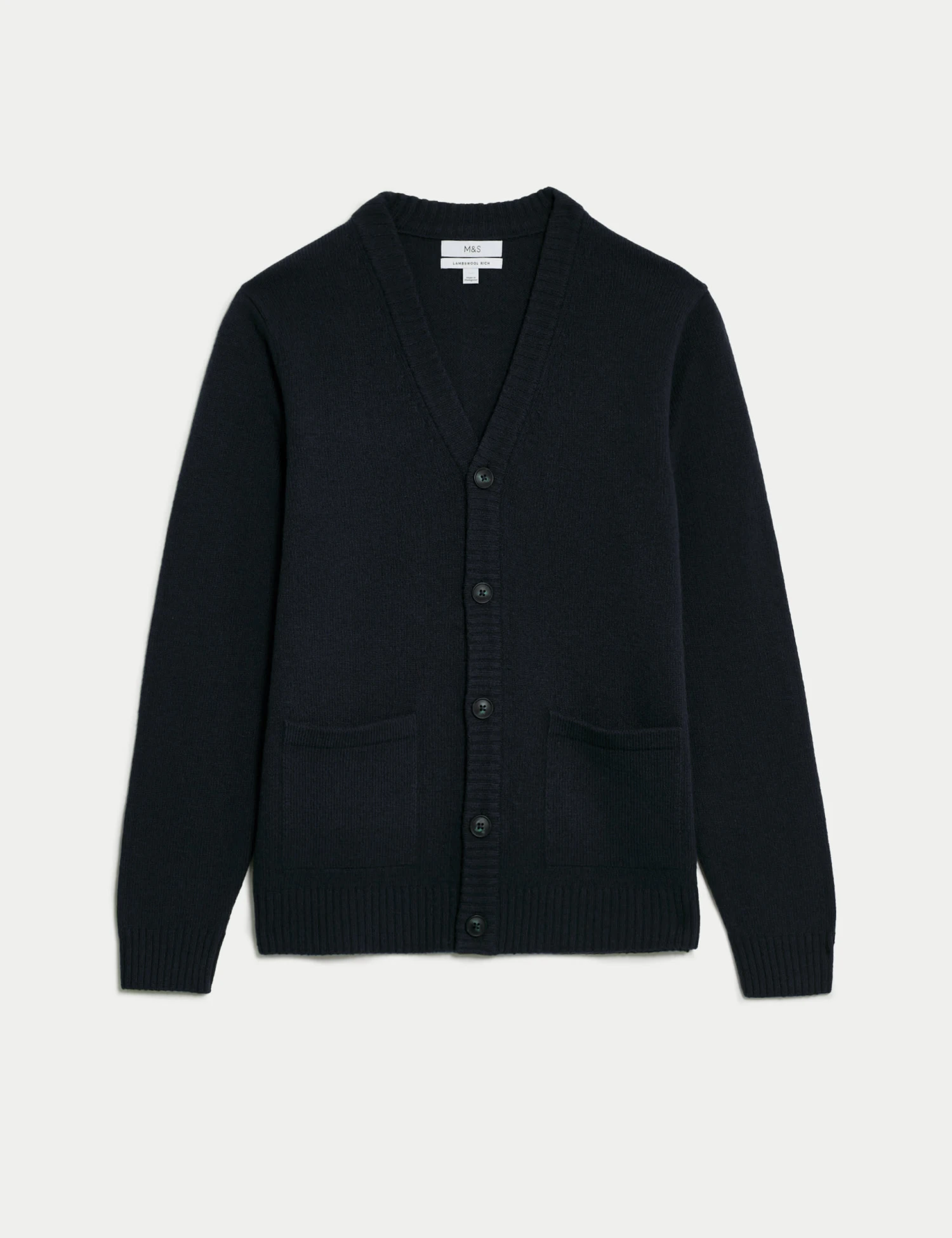 Crafted from extra-fine lambswool-rich yarn, this smart cardigan is both luxuriously cosy and hardwearing. Classic v-neck for a sharp look. Neat button-through fastening. Stretchy ribbing at the cuffs, collar and hem for a snug feel. Two side pockets are perfect for warming your hands. M&S Collection: easy-to-wear wardrobe staples that combine classic and contemporary styles.