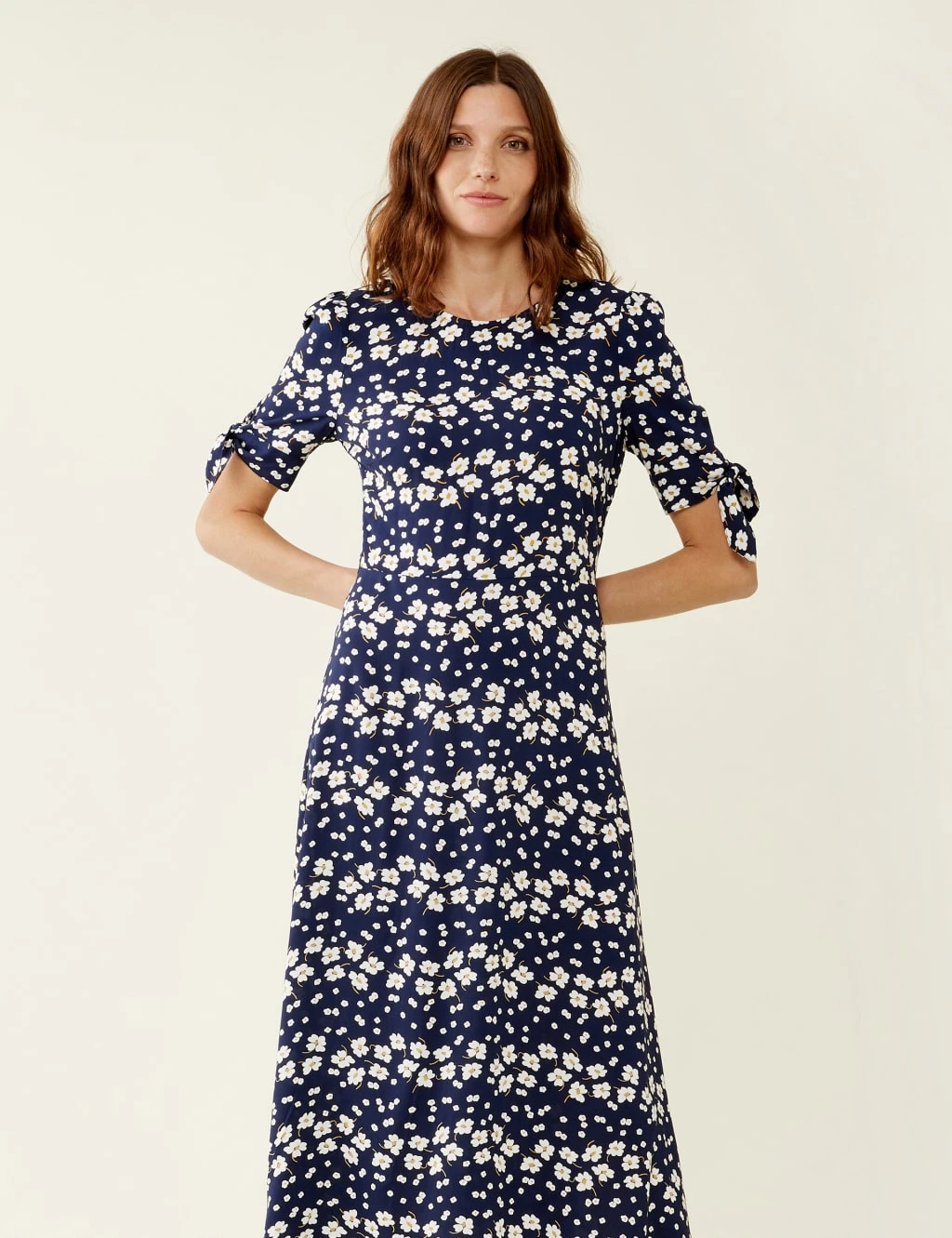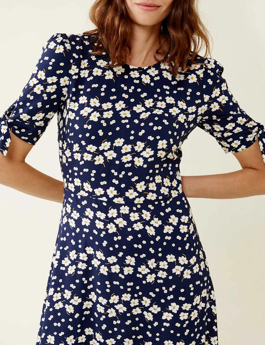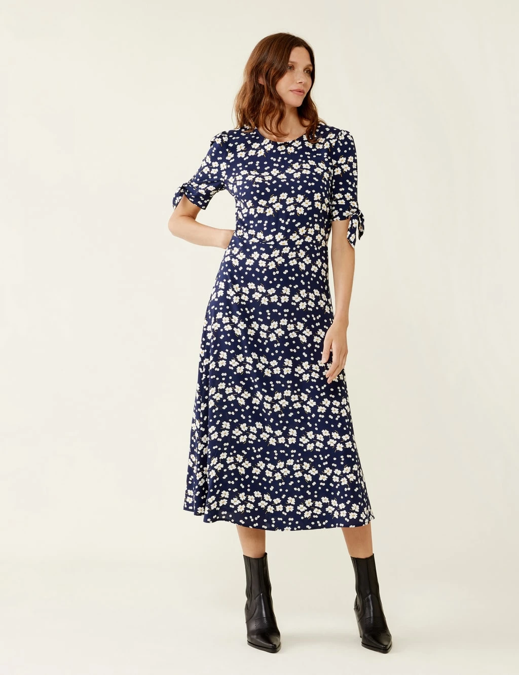 This floral tea dress from Finery London is full of timeless elegance. Cut in a regular fit, the midaxi-length style features a simple round neckline with a keyhole button fastening at the back. Tie detailing on the short sleeves adds a feminine flourish.