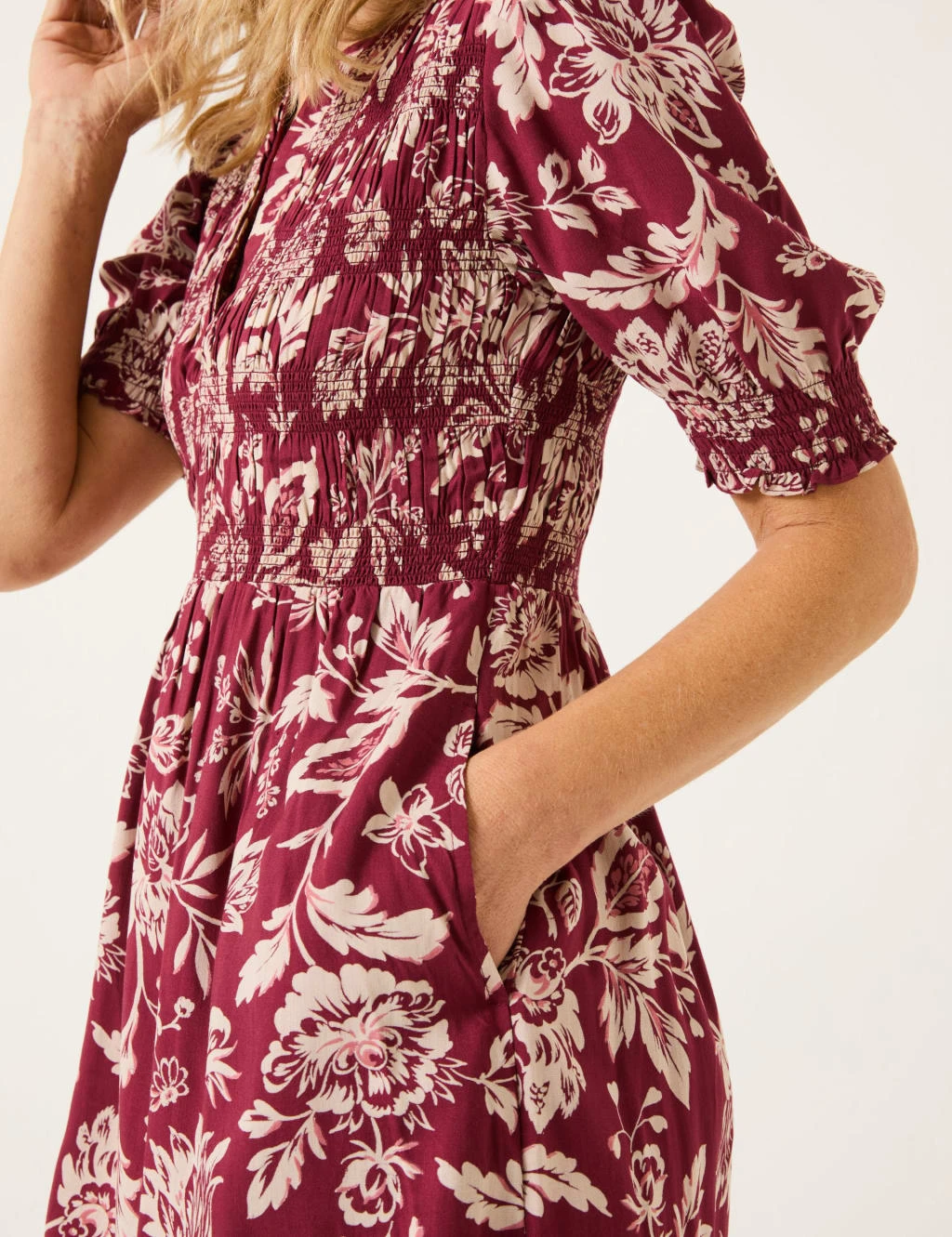 With its bold floral print, this swing dress from FatFace makes a standout choice for casual days. It’s cut in a comfy regular fit, with a flattering v-neckline and short sleeves. Elasticated shirring gently cinches the waist, while the knee-length skirt has plenty of flare for a feminine silhouette.