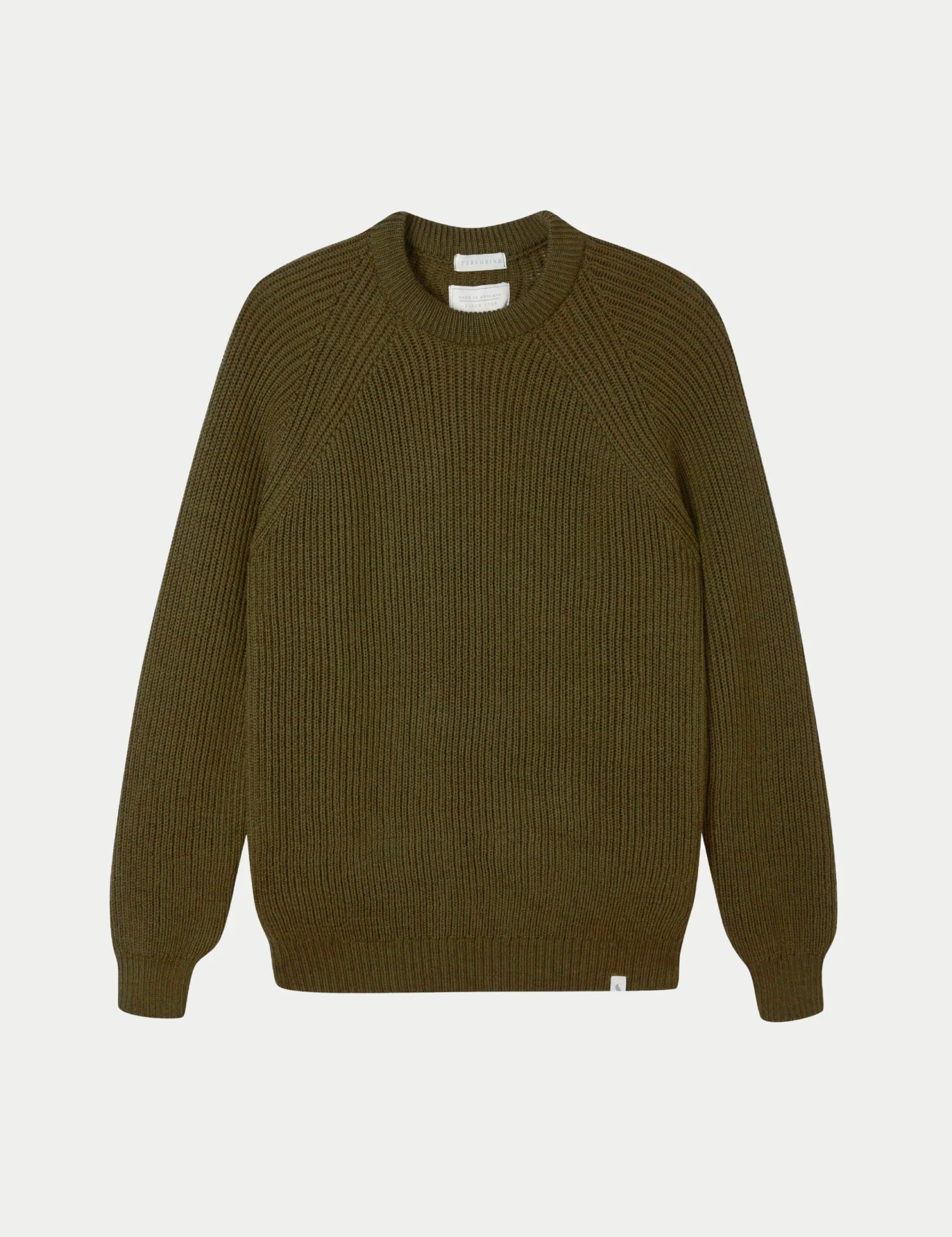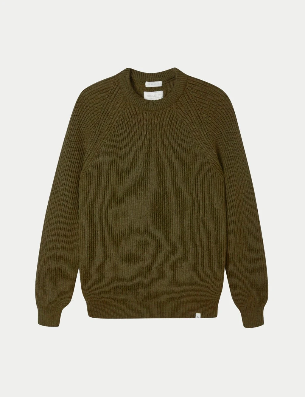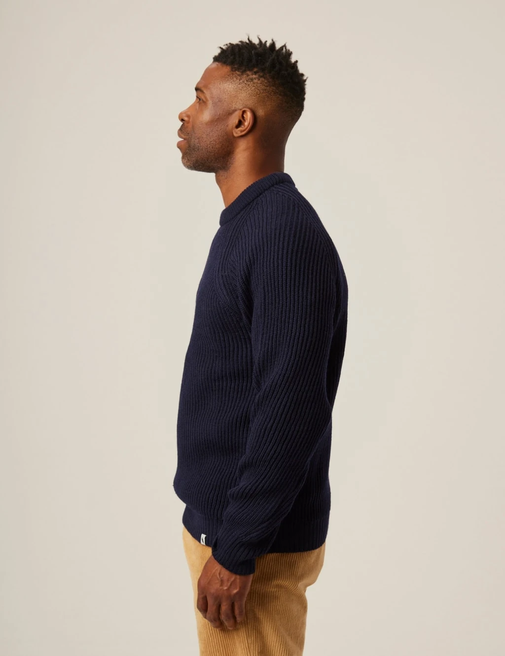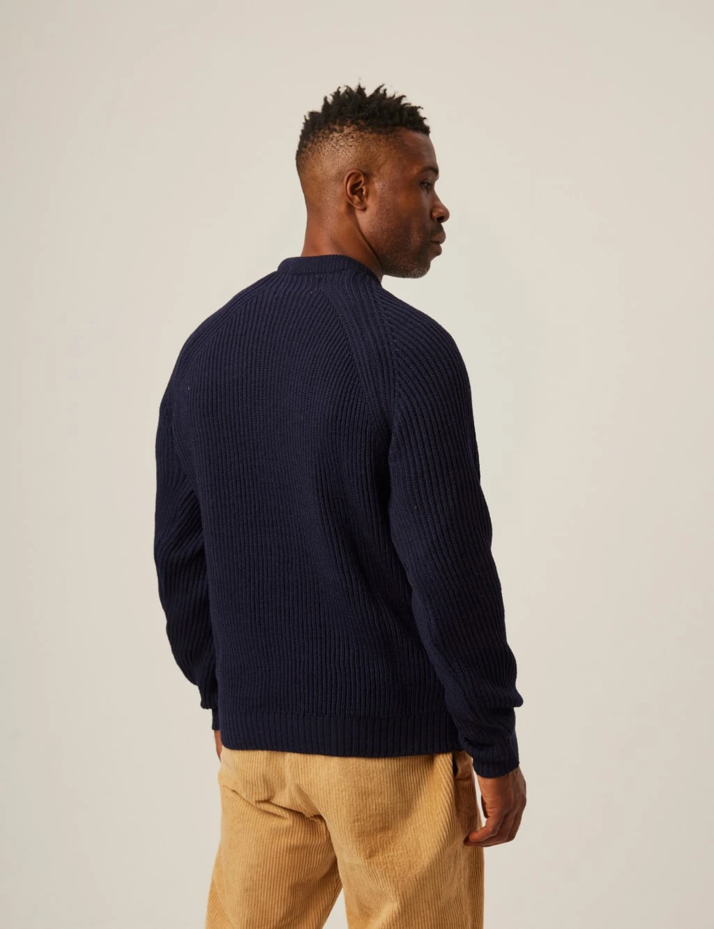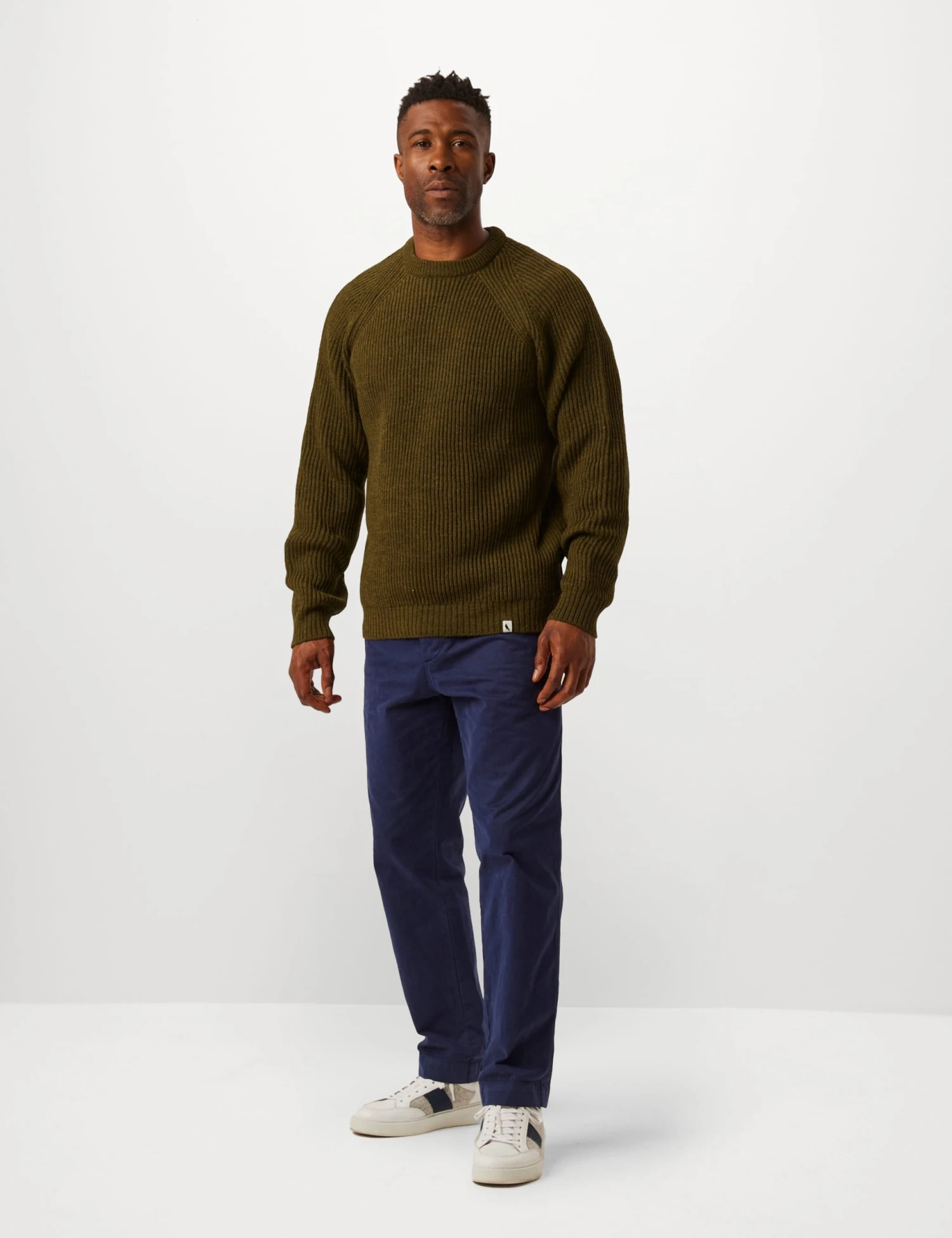 Crafted from pure wool, this jumper from Peregrine is a premium choice for chilly days. It’s made in a thick ribbed knit, with a smart crew neck and neat ribbed trims. The brand’s signature bird logo tab on the hem gives it a distinctive finishing touch.