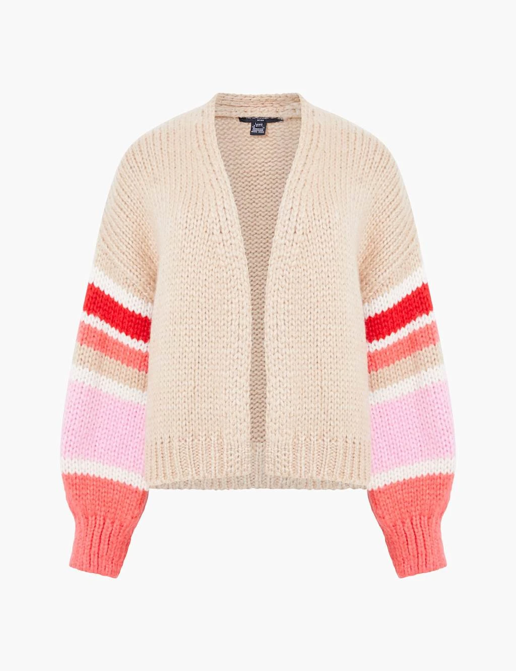 Throw on this cardigan from French Connection when you need an extra layer of warmth. It’s designed in a regular fit with an open edge-to-edge front, and casually dropped shoulders for a laidback look. Chunky stitches add textural appeal, while colour-block detailing on the long sleeves adds a bright pop.