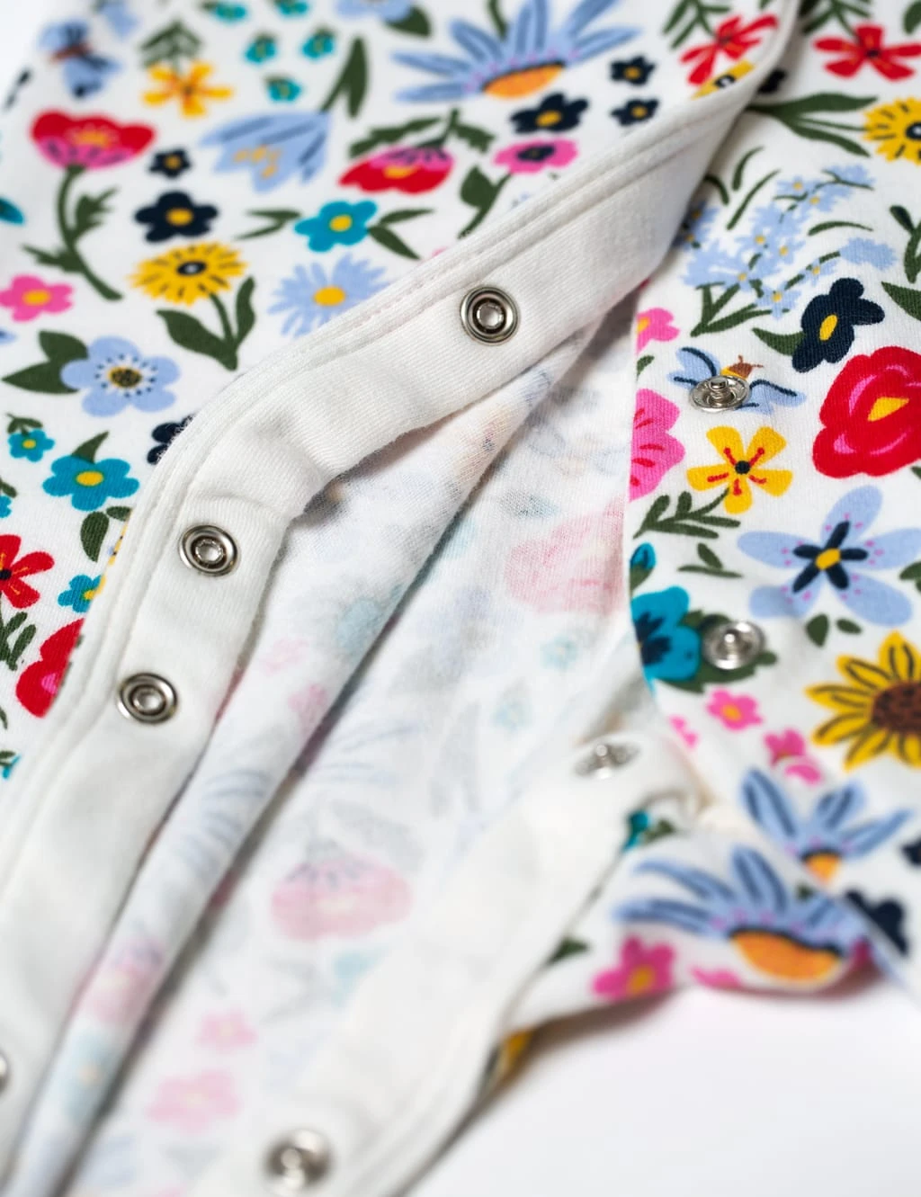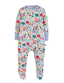 This organic cotton sleepsuit from Frugi is an adorable choice for their bedtime. The pretty design features full-length legs and long sleeves for cosiness, plus a comfortable round neck. Practical poppers make changing time a breeze, while a vibrant floral print gives this piece a charming look.