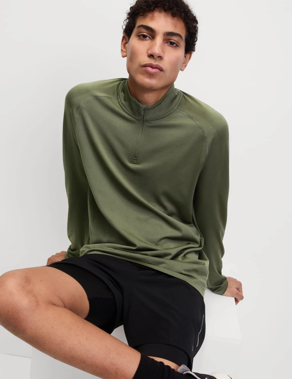 This long-sleeved top from our Goodmove collection is perfect for active days. It’s made to a regular fit with a funnel neck and a versatile half-zip fastening. The breathable fabric is moisture-wicking, quick-drying and seamfree for ultimate comfort as you work out.