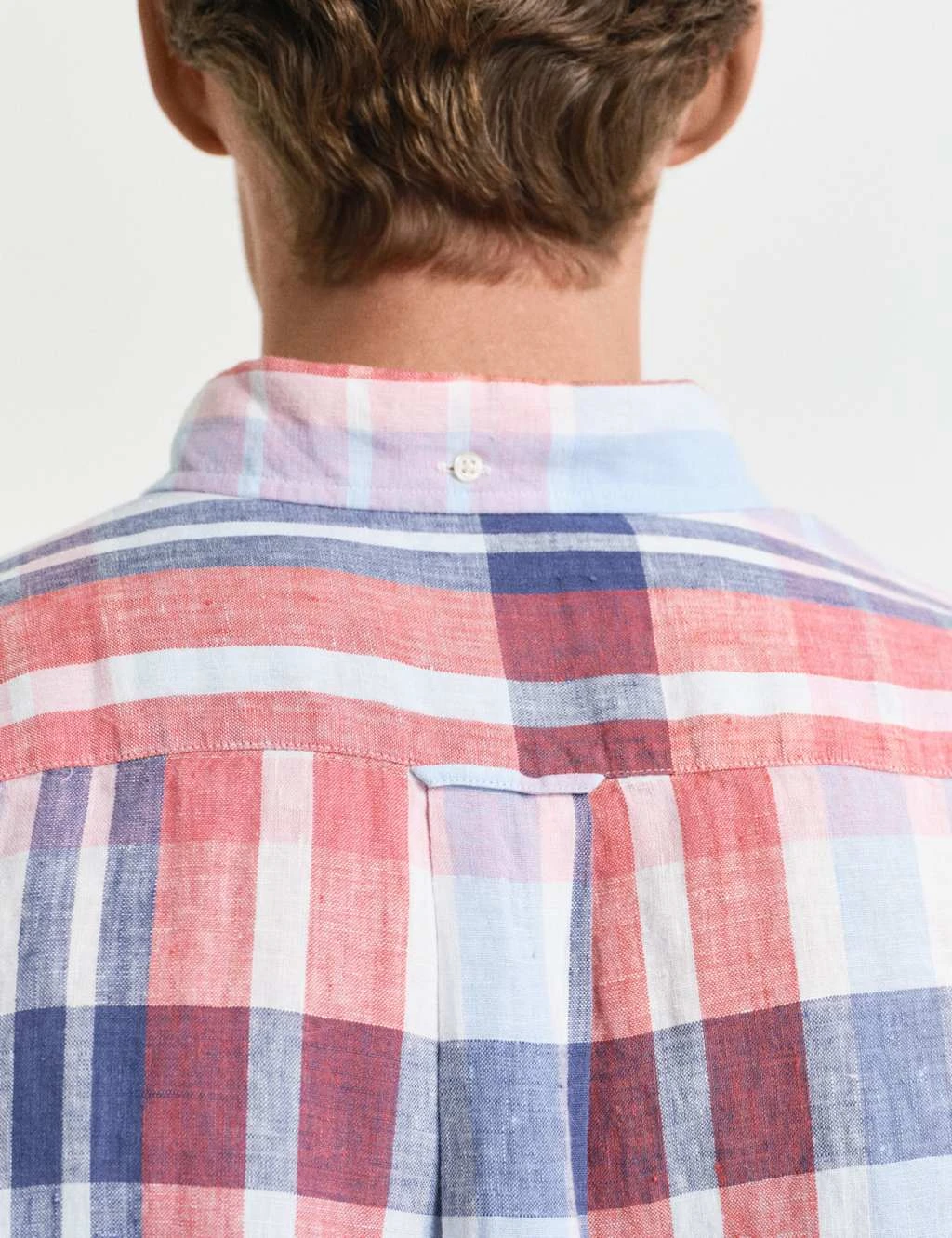 This GANT shirt is adorned with a classic Indian madras check for a timeless look. It’s designed in a regular fit from naturally breathable and lightweight linen fabric. A box pleat with a locker loop at the back makes it easy to move in. A button-down collar, curved hem and chest pocket with logo embroidery complete the piece.