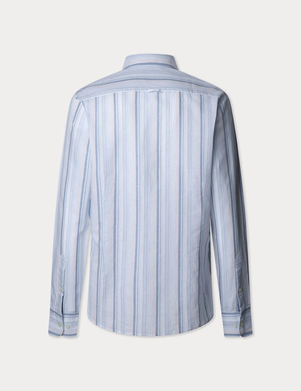 This Hackett shirt is crafted from a breathable blend of cotton and linen for a refined feel. It’s cut in a comfortable regular fit, with tailored touches of a button-down collar and rounded double cuffs. The piece is finished with an eye-catching multi-stripe print.