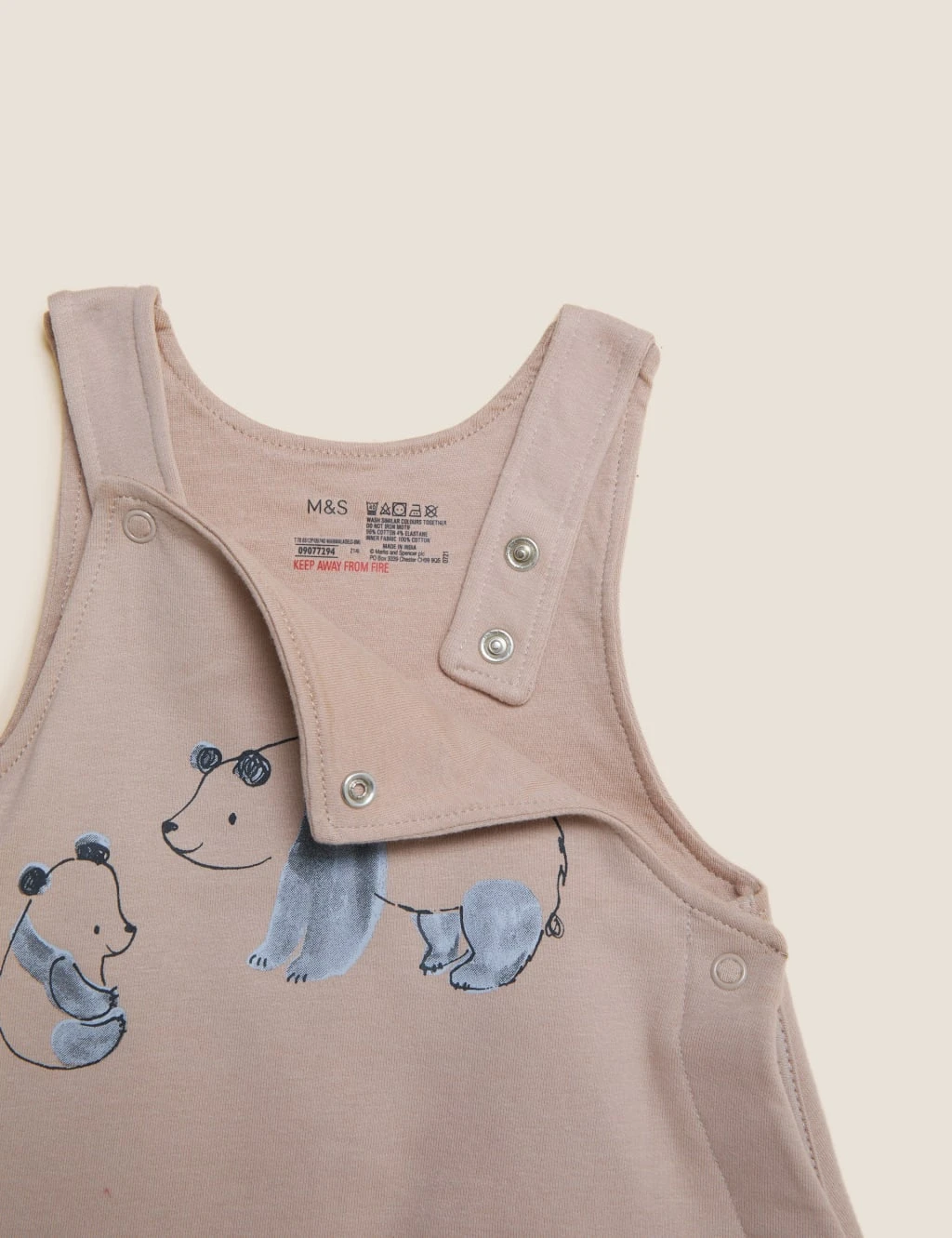 Up the cute factor with these stretchy cotton-rich dungarees featuring an adorable panda print. Specially designed and adapted to be worn with a hip dysplasia harness. Popper fastening means they can be opened flat for easy dressing. Printed care labels and flat seems for extra comfort. We only ever use responsibly sourced cotton for our clothes.