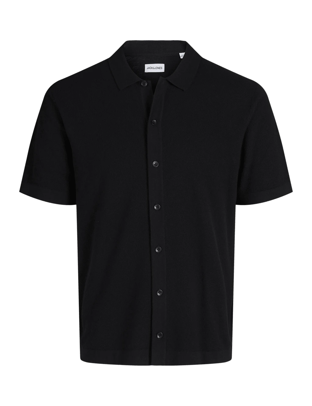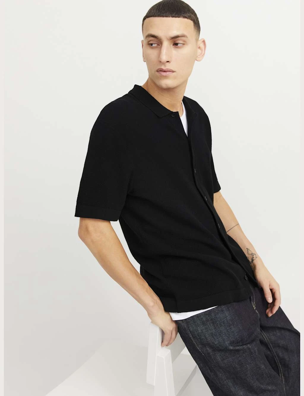 This shirt from JACK & JONES is knitted with cotton-rich yarn to give it a cosy textured look. It has neat short sleeves and a smart collared neckline. A row of buttons lets you wear it your way.