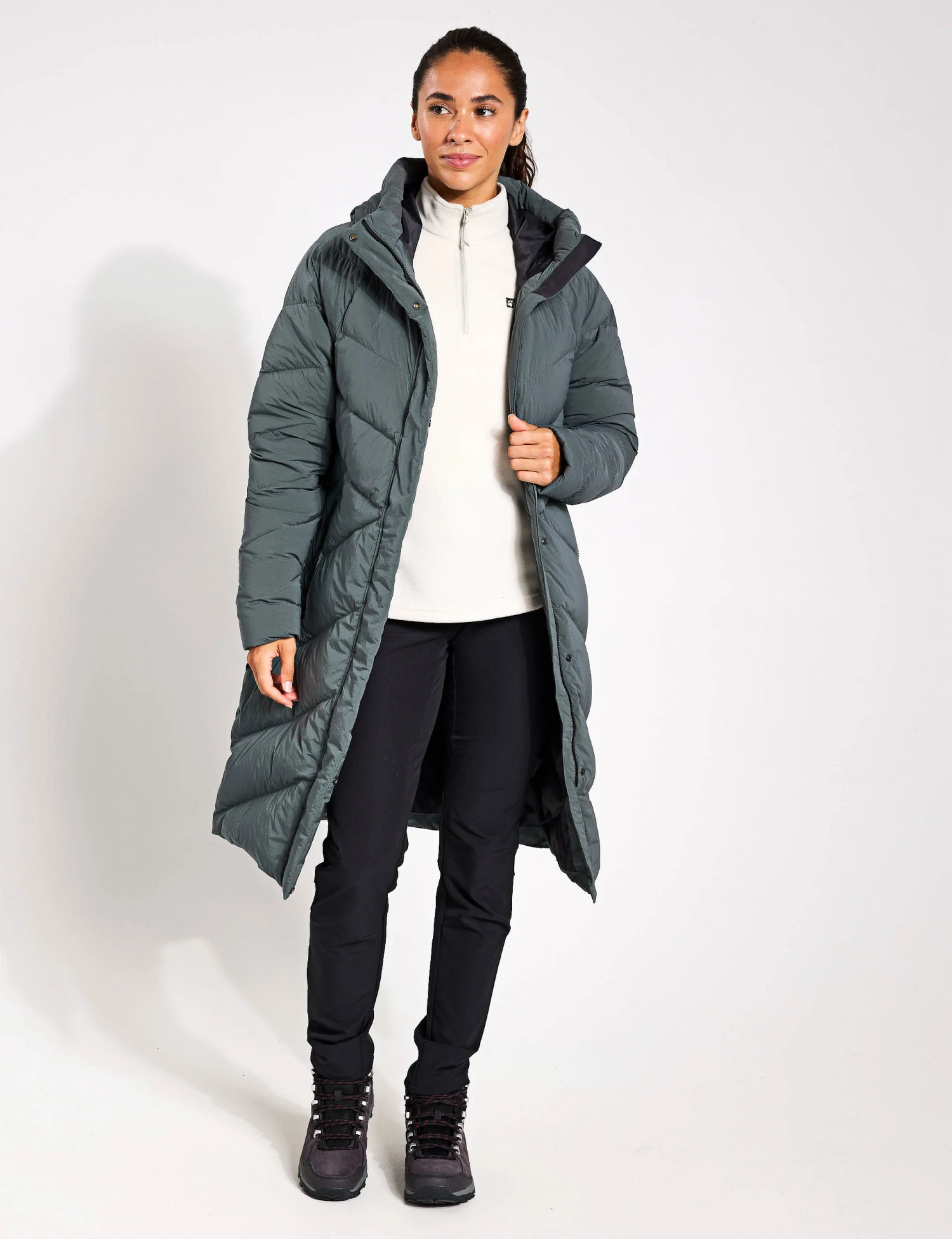 87% polyamide, 13% elastane , Filling – 90% grey duck down, 10% feather