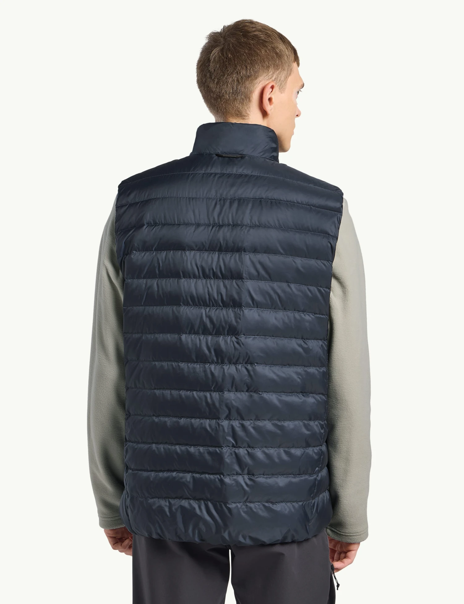 Layer up in this warm gilet from Jack Wolfskin. It’s made in a regular fit from TEXASHIELD PRO fabric that’s windproof, water-repellent and breathable. This style is padded with natural down for excellent warmth. It’s finished with a full zip fastening and two secure zipped side pockets.