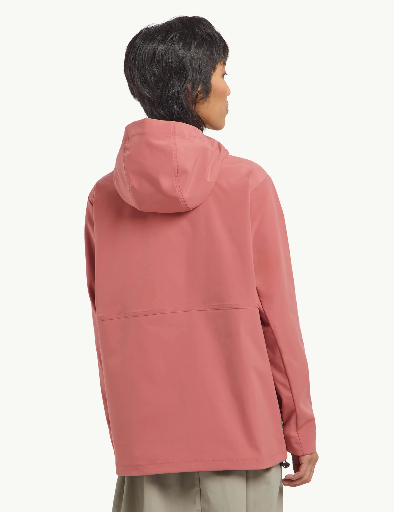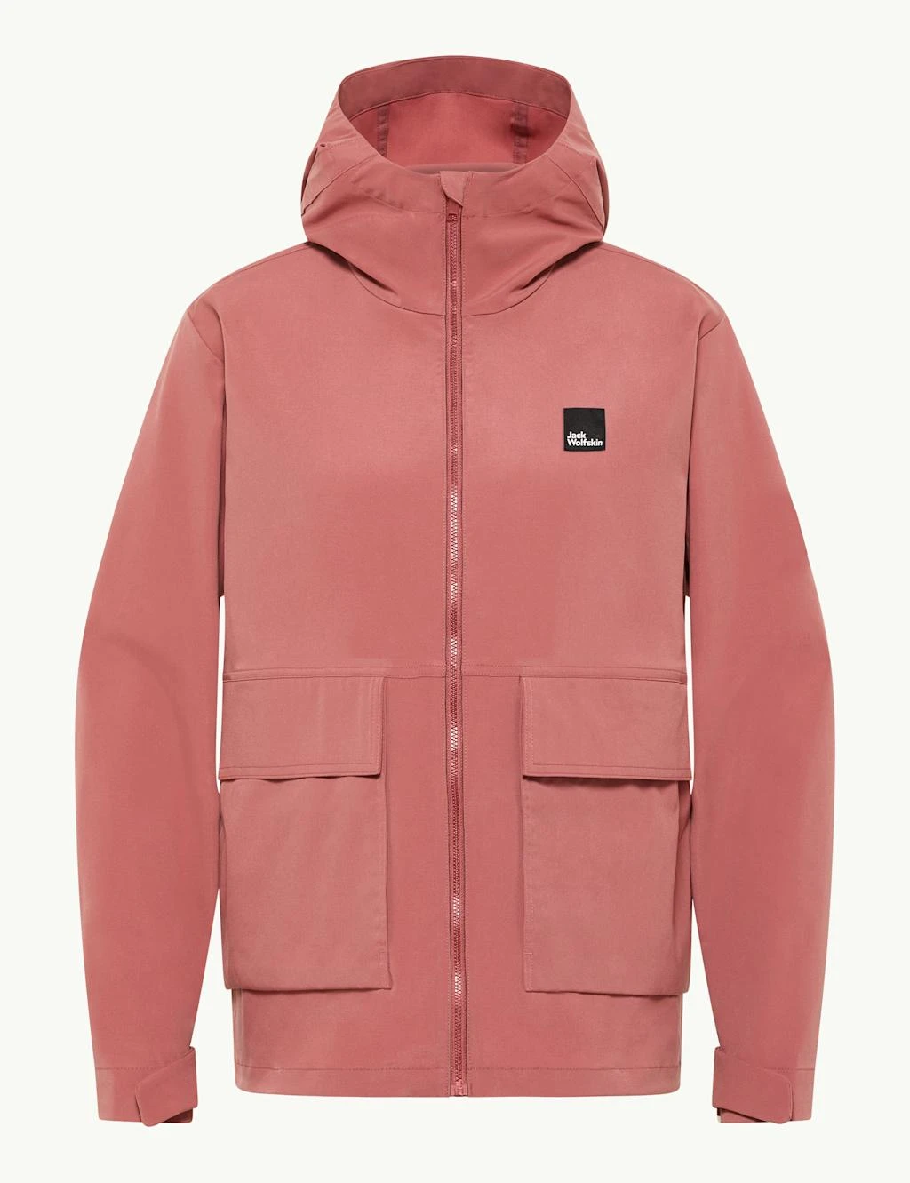 The Terracade rain jacket from Jack Wolfskin effortlessly blends utility style with weather-ready performance. It offers a relaxed, boxy fit, complemented by a hood with a toggle adjuster for a secure feel. This jacket provides complete protection from wind and light precipitation. Additional features include a contrasting zip, toggle adjuster at the hem and ample pockets for convenient storage.