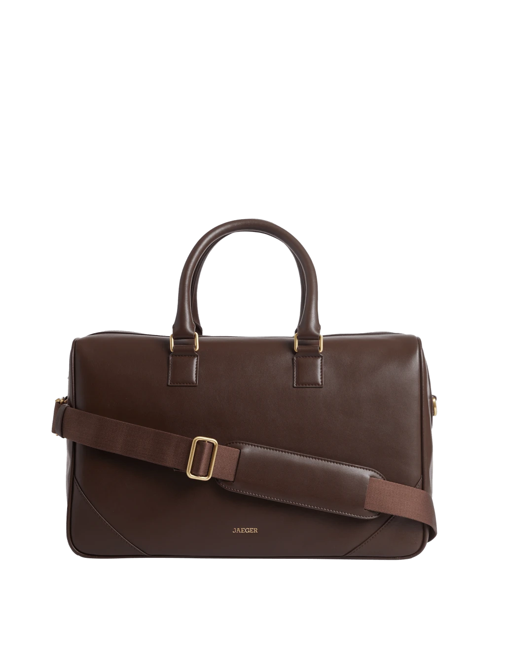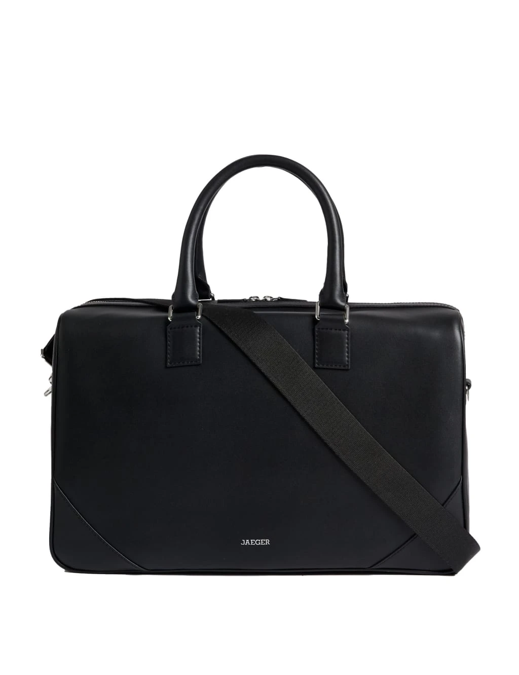 With its detachable shoulder strap and twin carry handles, this Jaeger holdall offers a choice of carrying options. It’s made from premium leather with a smooth finish. The main compartment is accessed via a double zip fastening, while an internal pocket keeps your essentials organised. Branded metalwork adds a stylish finishing touch. Jaeger is a brand synonymous with British style, offering luxury apparel, accessories and leather goods.