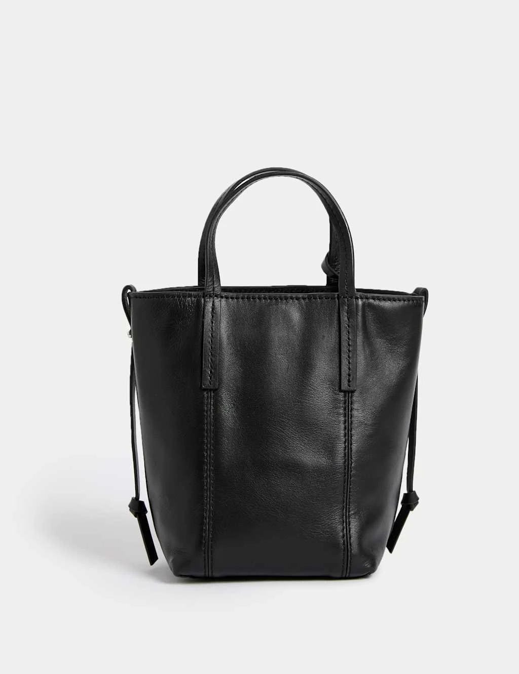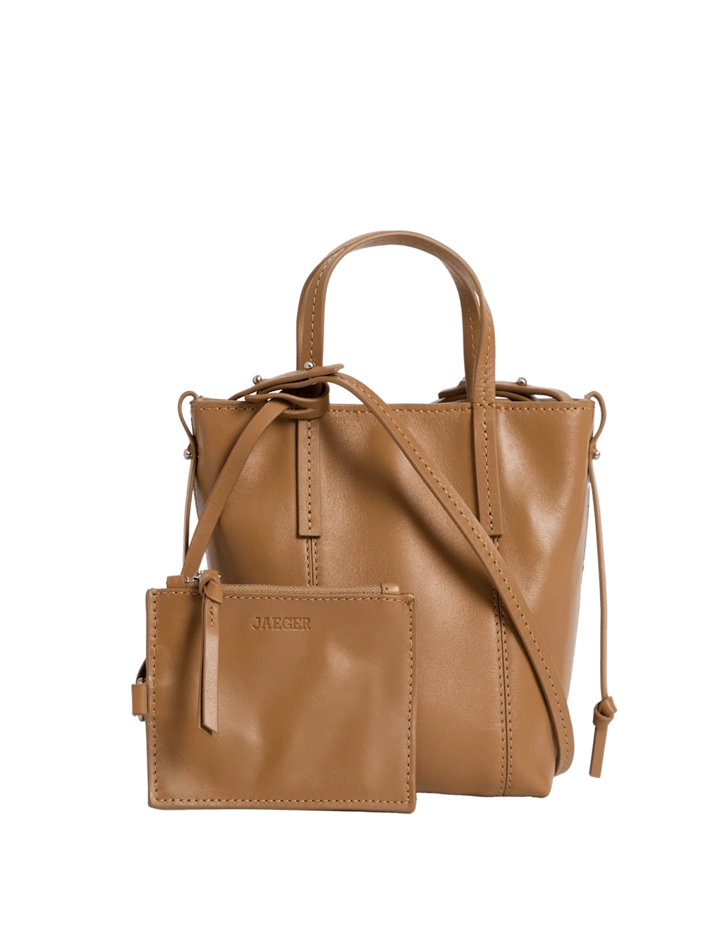 Stylish and functional, this leather bag by Jaeger can be worn in multiple ways, thanks to its adjustable ties. It features two top handles plus a detachable cross-body strap. Inside, you’ll find a slip pocket and a handy zip-fastened pouch. This versatile style will take you from desk to dinner.
