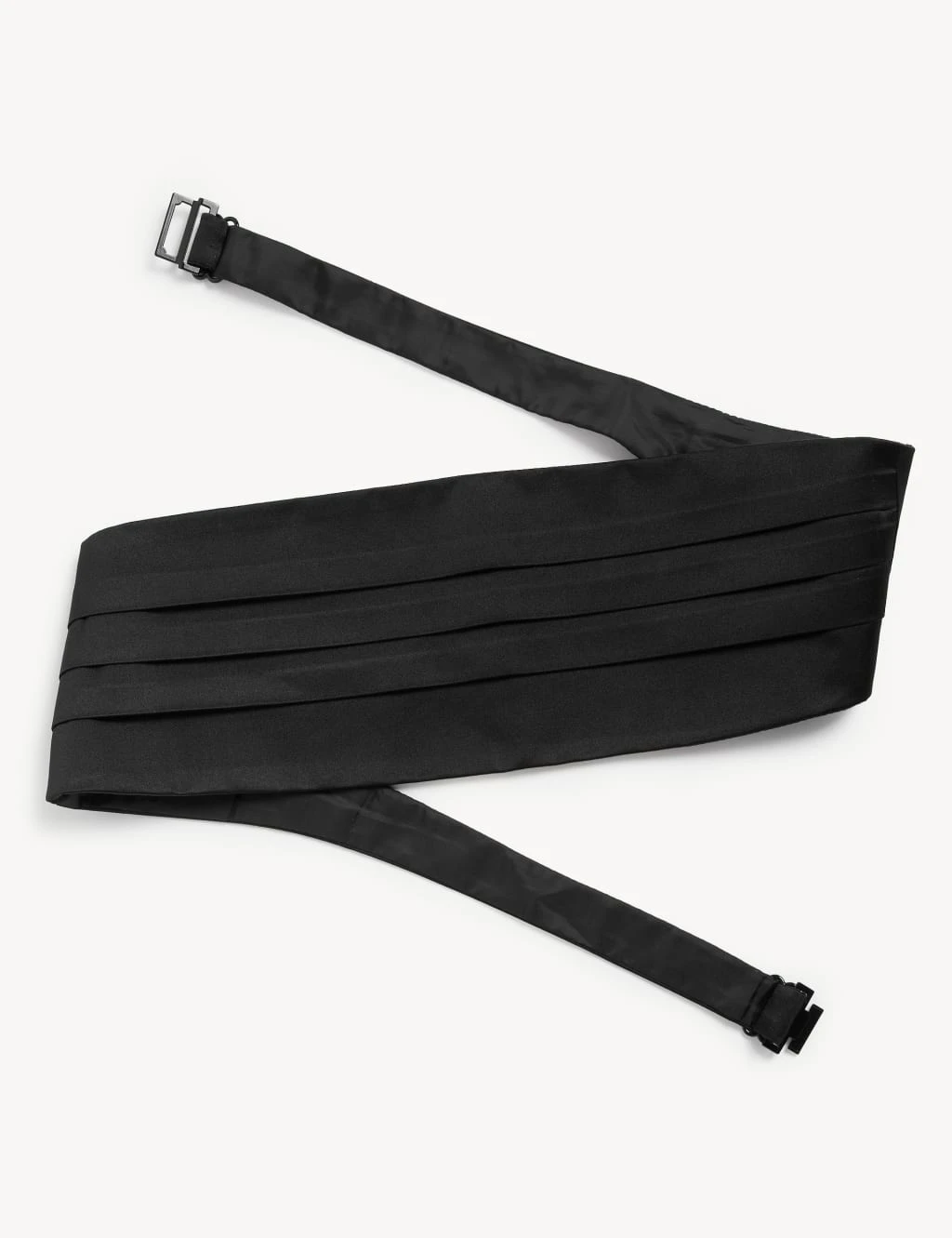 Formal occasions call for this pure silk cummerbund by Jaeger. This sophisticated piece fastens with a concealed clip at the back and is finished with large pleats. Wear with a classic tux, bow tie and cufflinks for show-stopping event style.