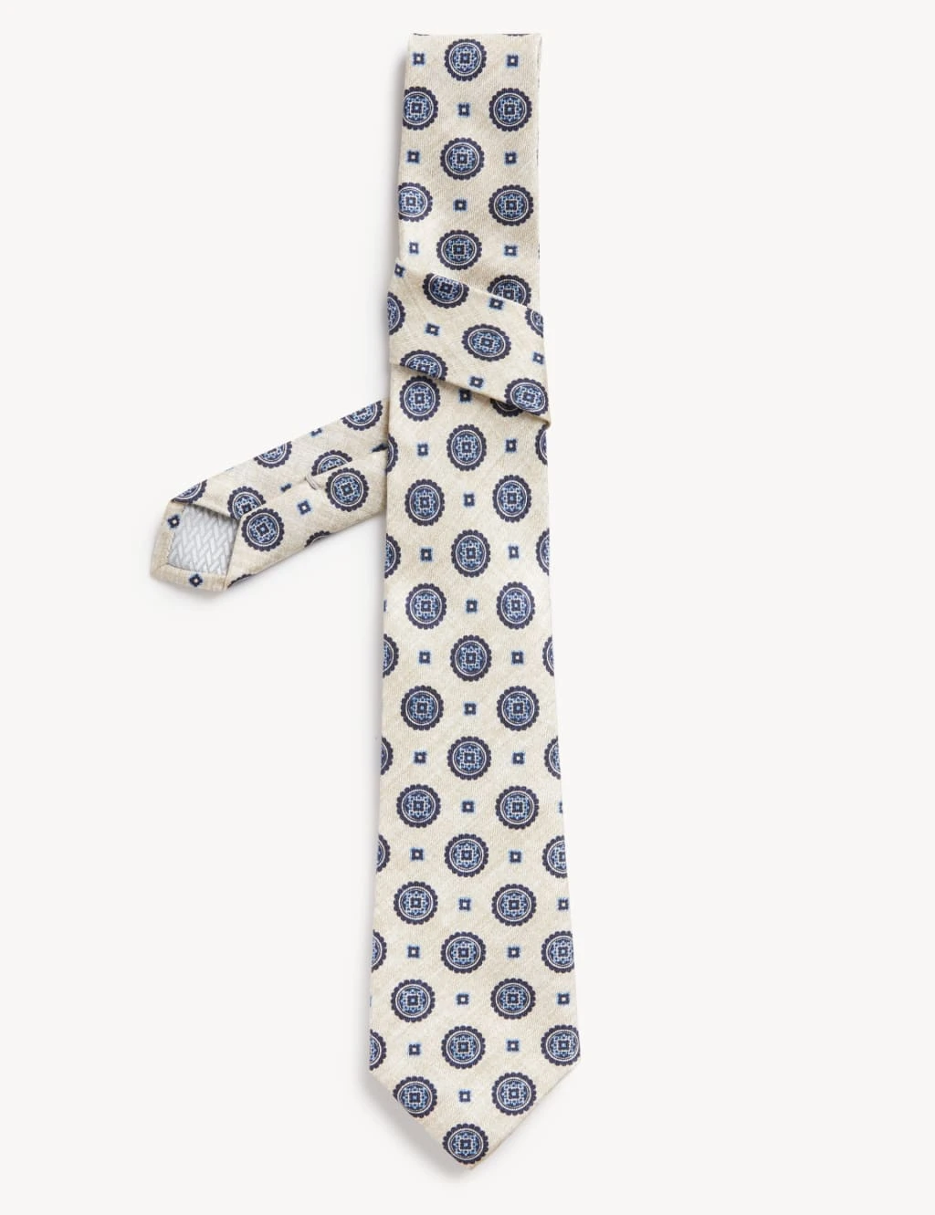 With its eye-catching mosaic design, this Italian pure silk tie by Jaeger is the perfect decorative focal point. The luxurious silk fibres create a natural lustre and elegant drape. It comes in a contemporary slim shape, with a width of 7cm. Use yours to complement a navy suit, wearing a crisp white shirt for statement contrast.