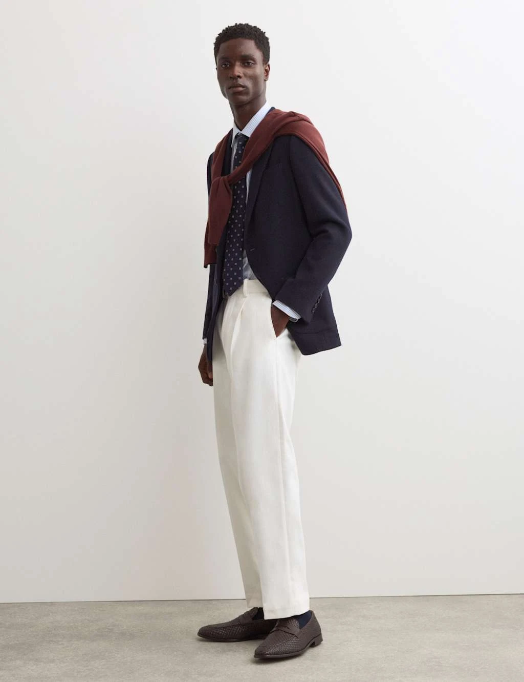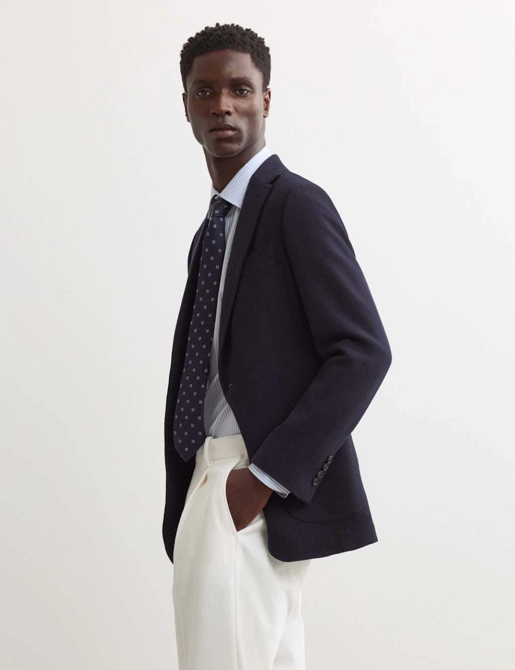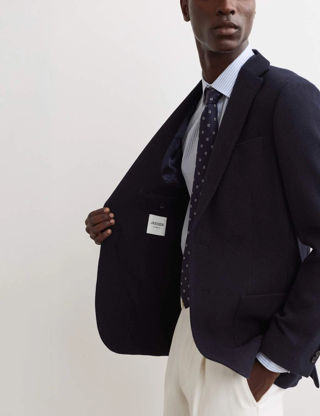 Crafted from warm Italian wool with a touch of soft cashmere, this twill blazer by Jaeger is a pleasure to wear. It’s a sleek tailored fit for extra comfort. The half-canvas construction helps it maintain its shape. The on-trend two button fastening is complemented by the smart four-button cuffs, and the notched lapels are a timeless tailoring touch. Lycra® in the fabric makes it easy to move in. Two flap pockets are useful for storing your personal items. Pair this refined single-breasted piece with your favourite shirt and smart trousers. Our suits come in a suit carrier to keep it looking fresh while on the move.