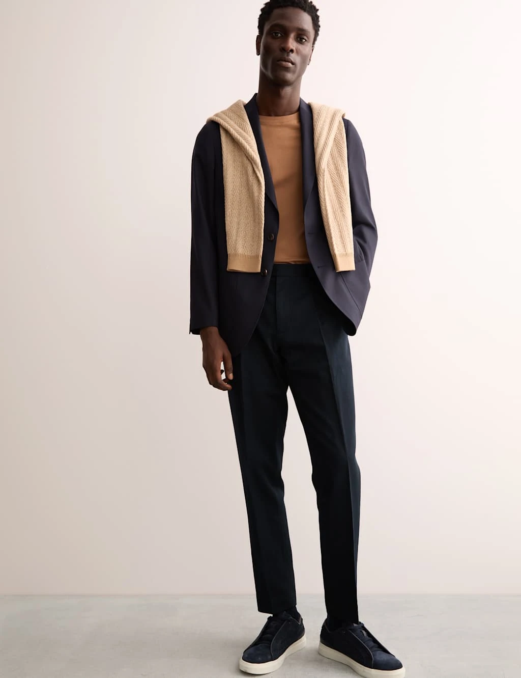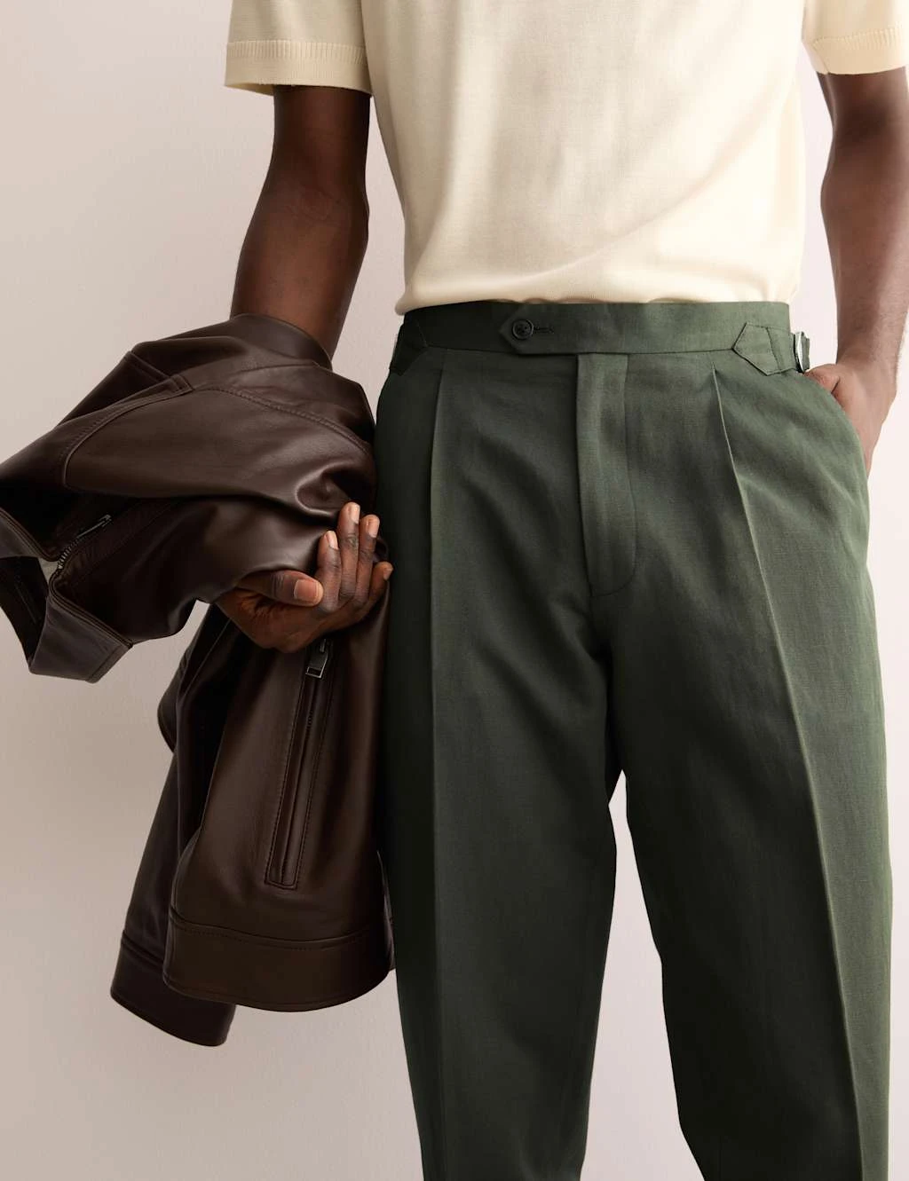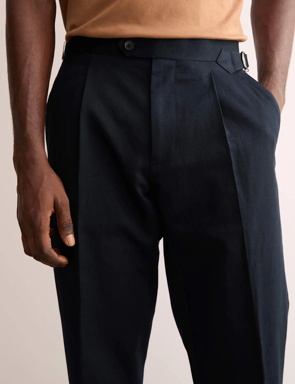 These cotton and linen blend trousers from Jaeger are a timeless addition to your smart wardrobe. They’re cut to a smart tailored fit, with a single pleat for a refined look. A hook, bar and zip fastening makes for easy wearing. Team them with your favourite tailored jacket for a sharp look.