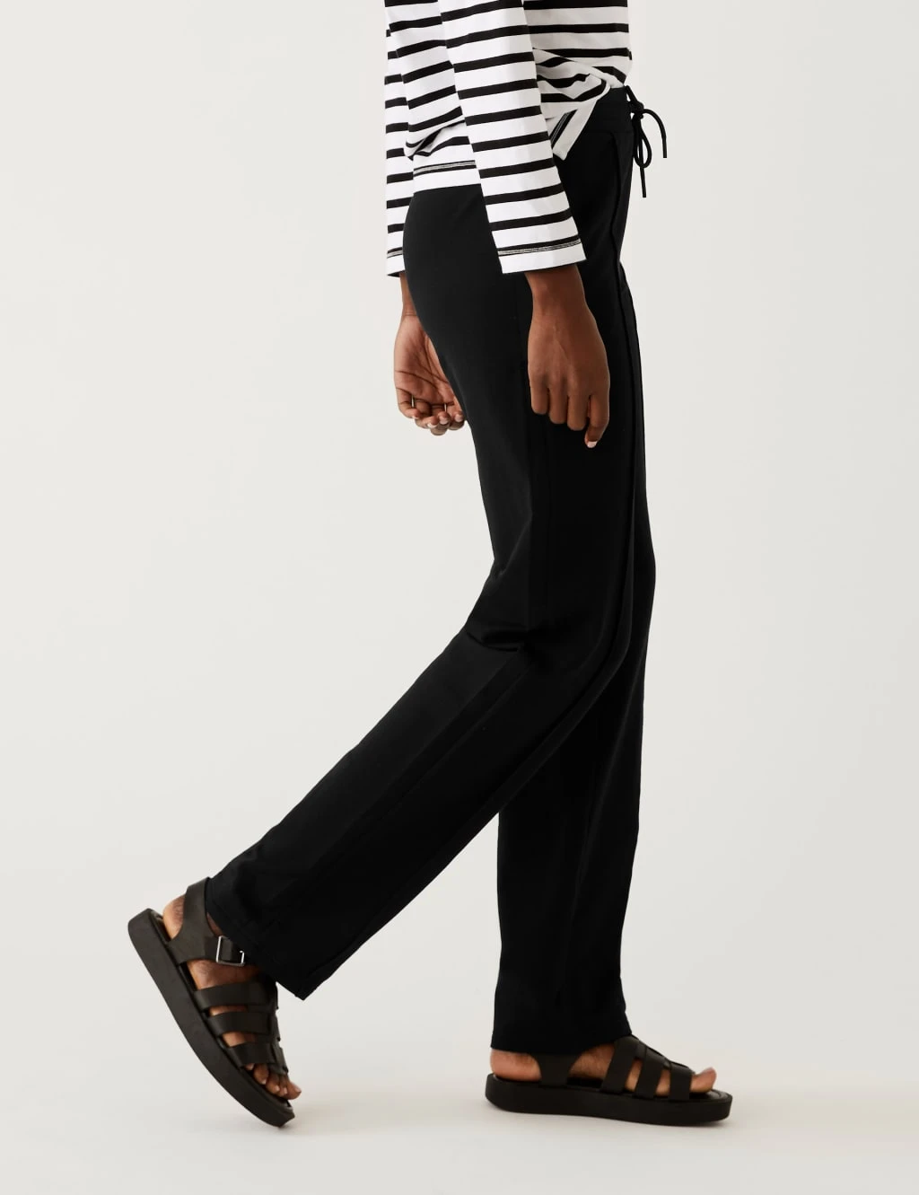 Enjoy comfortable basics like these cotton-rich jersey joggers. They’re cut with straight legs and feature an elasticated, high waistband with a drawstring fastening to provide maximum comfort. Each of the legs has a neat side tape detail and exposed seams on the front. Two secure zip-up pockets and a flat waistband at the back give on-the-move practicality. M&S Collection: easy-to-wear wardrobe staples that combine classic and contemporary styles.