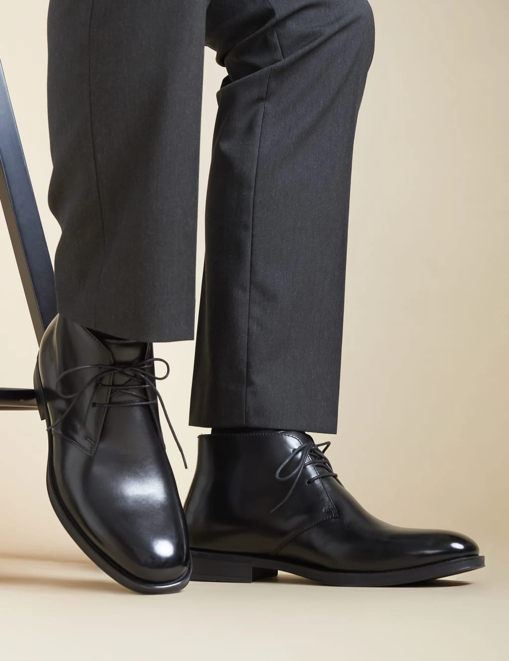 These leather Chukka boots from Jones Bootmaker are a timeless addition to your smart-casual wardrobe. They’re made in a lace-up style for a neat look, with a classic ankle-high silhouette. The durable outsole is lightly textured for good grip.