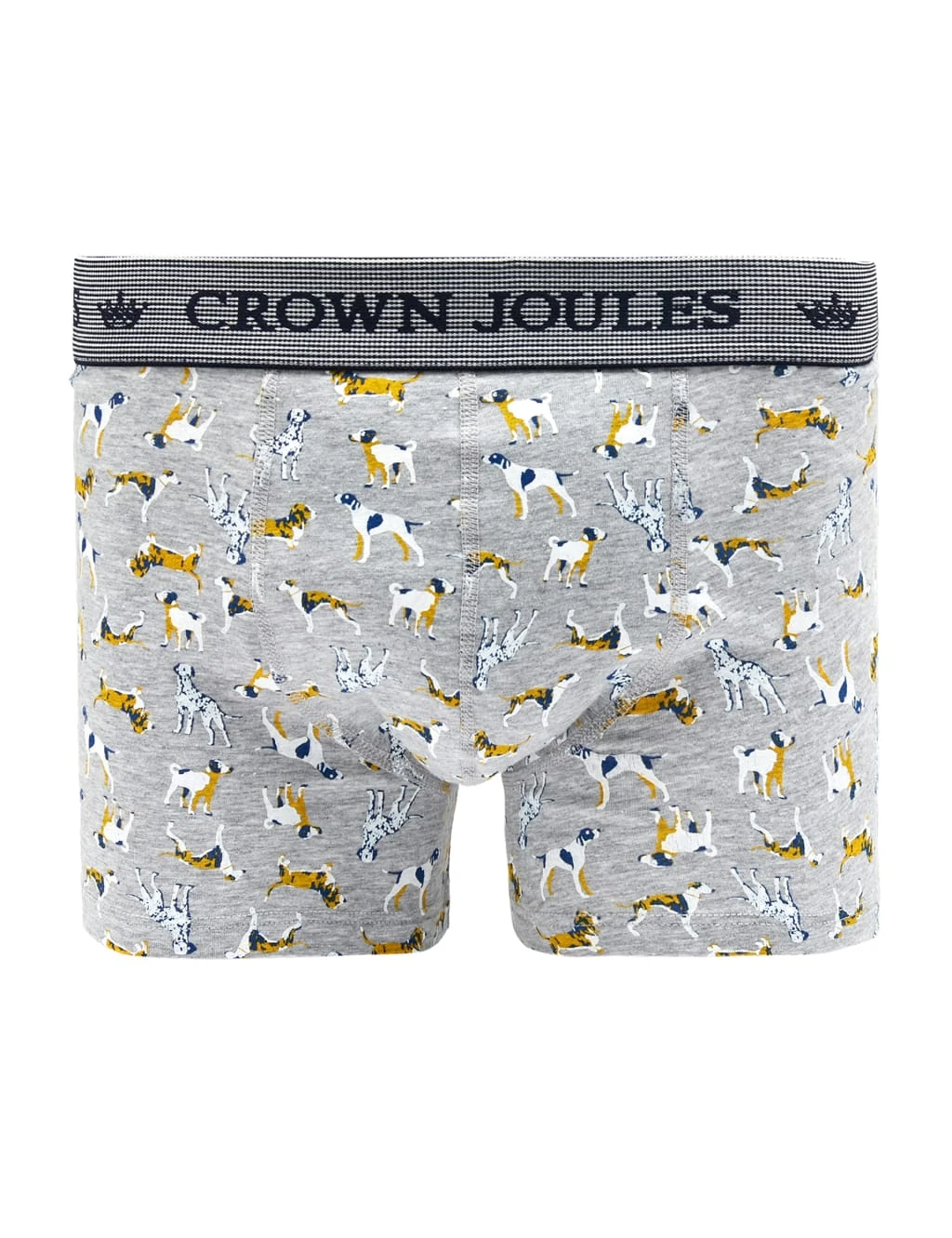 Update your essentials with these cotton-rich boxers from Joules. This handy pack of two features one striped and one dog-print pair. They both have a comfortable elasticated waistband and are finished with a playful ‘Crown Joules’ slogan. Made with organic cotton.