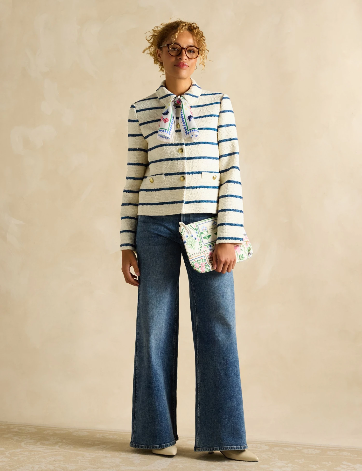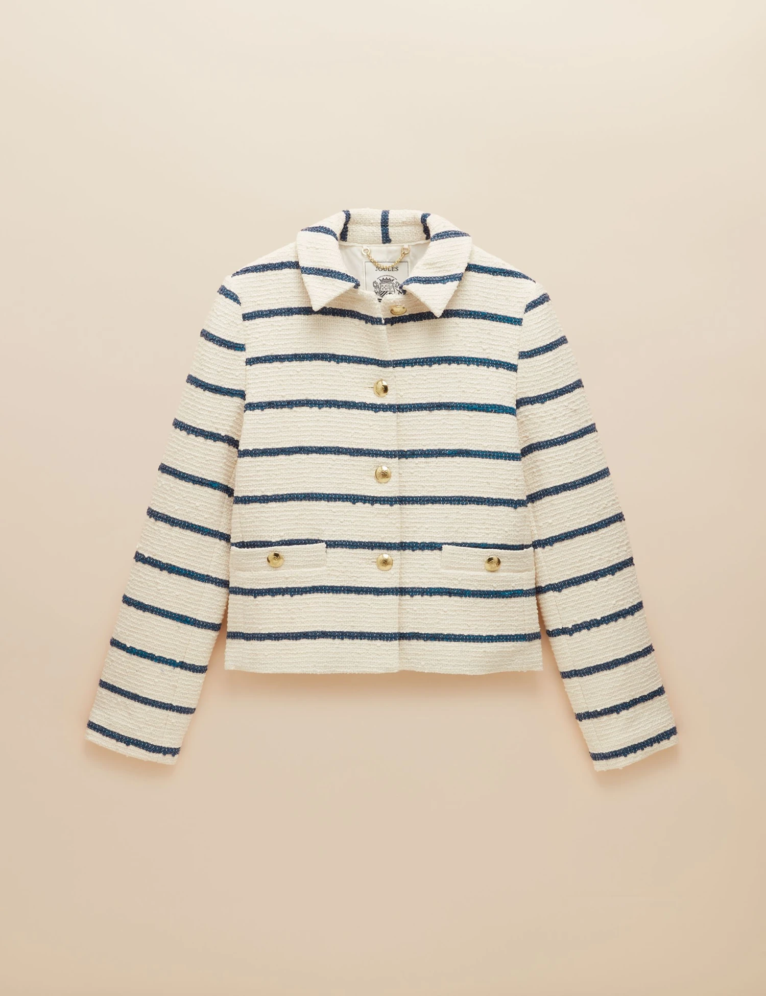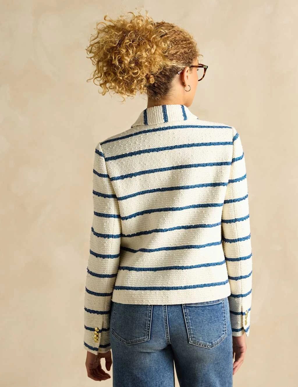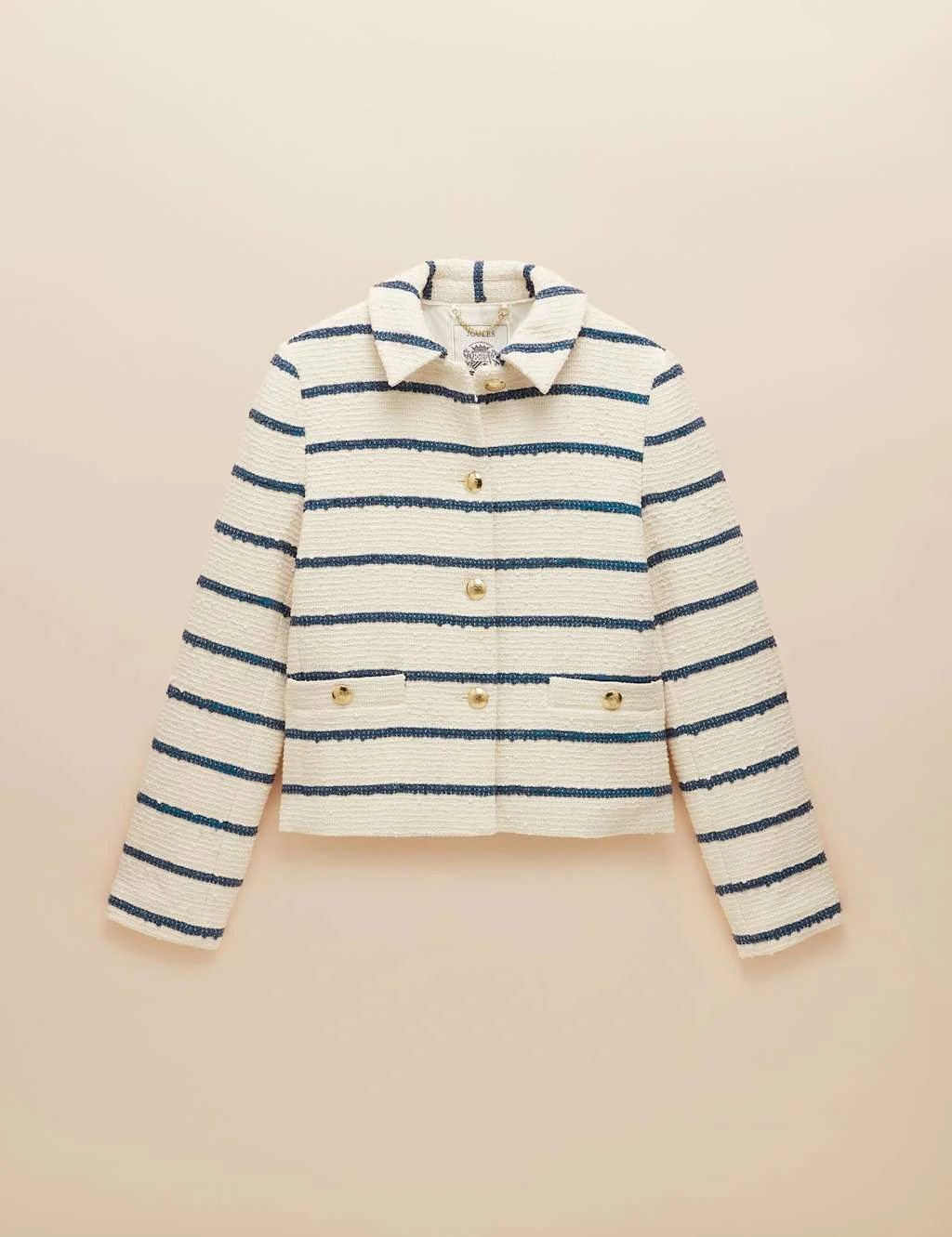 This striped cotton-rich jacket from Joules is crafted from bouclé fabric for a textured look. It’s made in a regular fit, with a smart collared neckline and gold-tone buttons. This piece is lined for comfort.