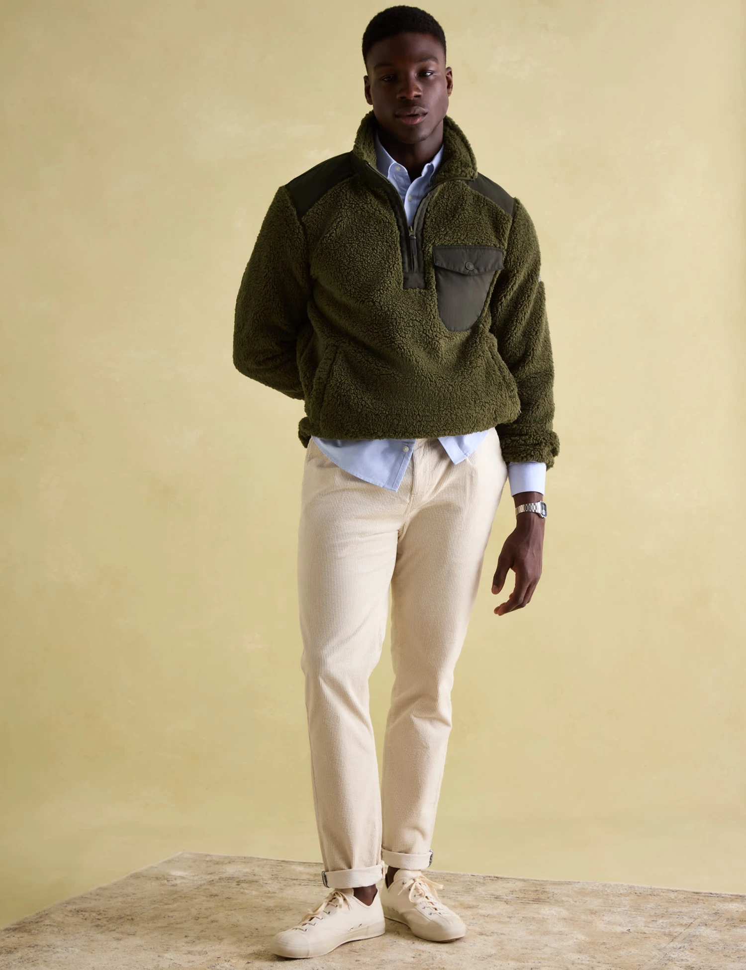 This textured fleece jumper from Joules is a cosy option for cold-weather days. It’s made in a comfy regular fit, with a half zip fastening that can be worn open or closed for extra warmth. Two side pockets and one contrast buttoned chest pocket provide room for your essentials, while branding on one sleeve and the back of the funnel neckline adds signature flair.