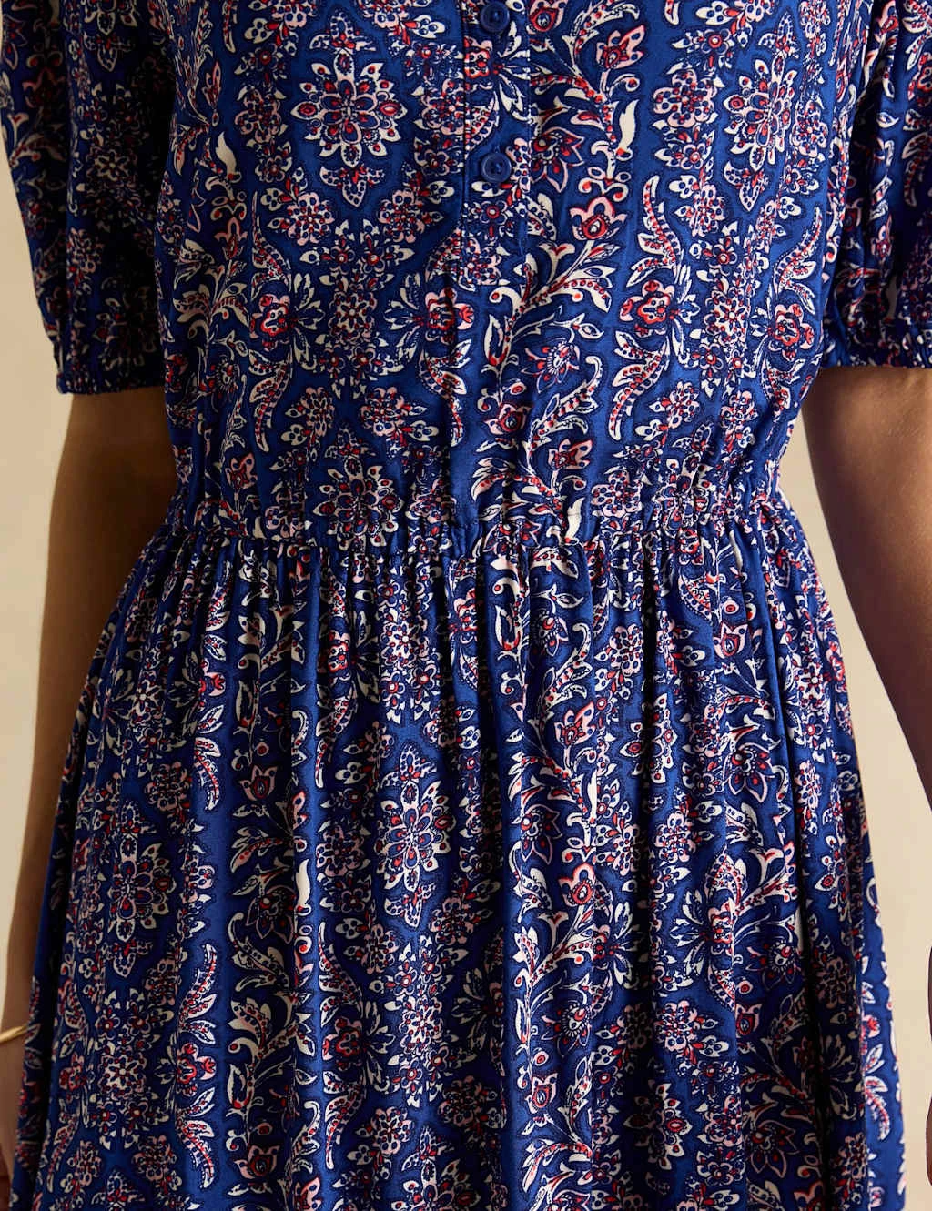 This Joules midaxi dress is crafted from soft, drapey fabric for a comfortable feel. It’s made in a regular fit to a waisted silhouette and features short sleeves. A five-button placket runs down the bodice from the round neckline, while the all-over hand-drawn print perfectly suits transeasonal wear.
