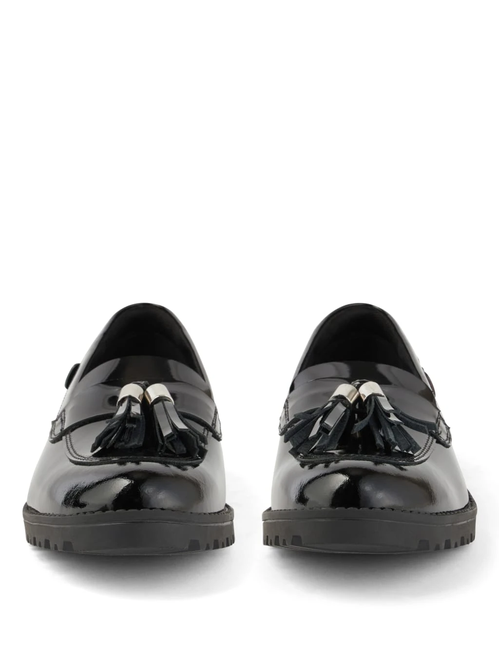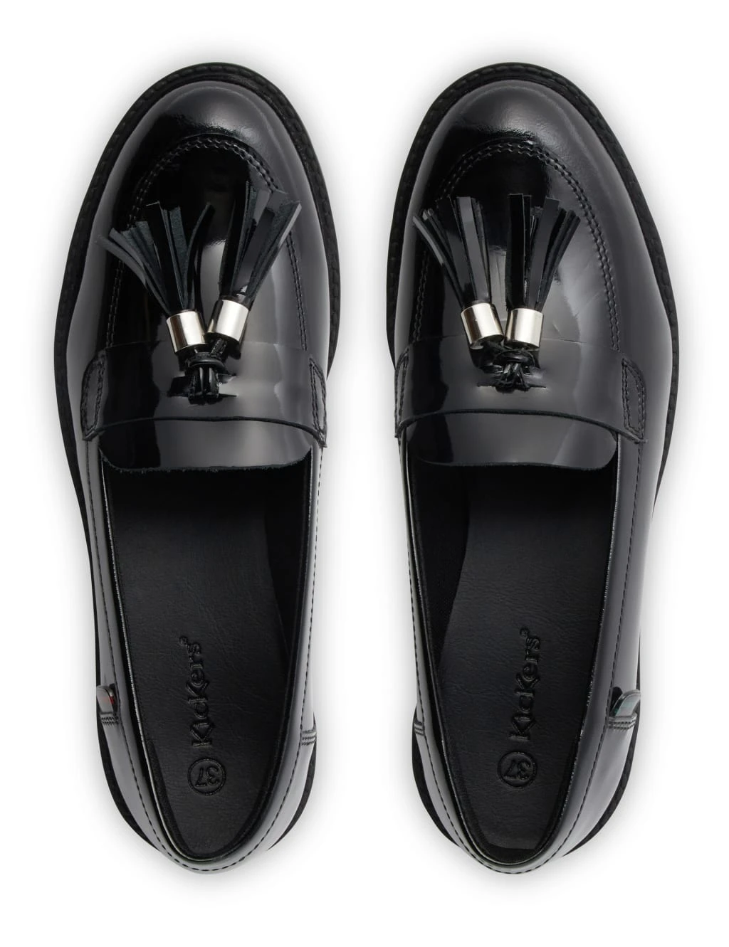 These patent leather loafers from Kickers put a high-shine spin on a classic shoe. Designed in a standard slip-on fit, they have the trademark chunky sole with comfortable padded collars. Tassel detailing and metallic hardware on the upper provide a traditional touch, alongside the brand’s signature tab.