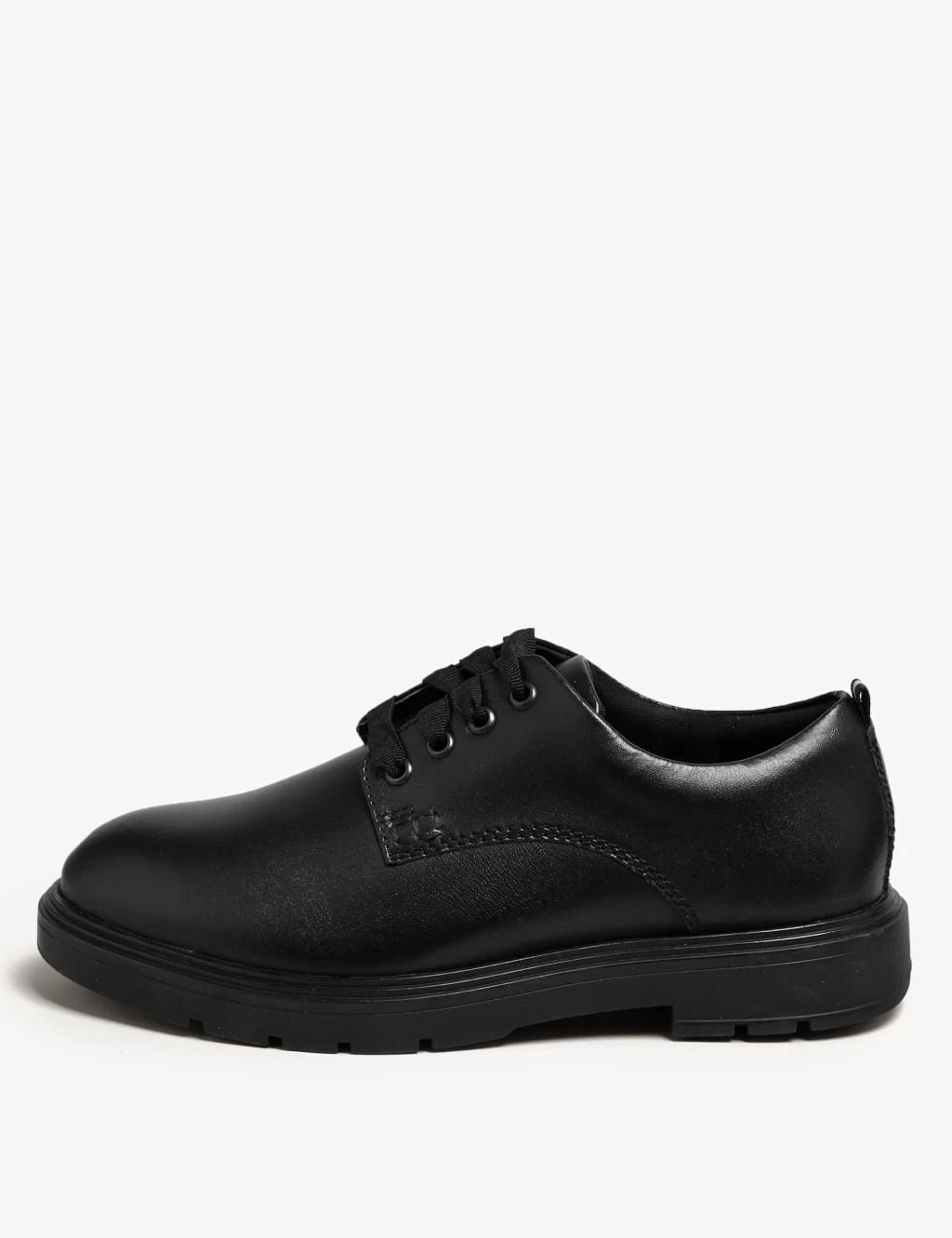 Get them set for school with these quality leather lace-up shoes. Squidgy underfoot foam and a padded collar ensure all-day comfort and a supportive fit for young feet. They feature a scuff-resistant coating as well as non-marking soles to protect floors. Our Freshfeet™ technology works to combat odours to keep feet fresh. Made with a recycled polyester lining and responsibly sourced leather.