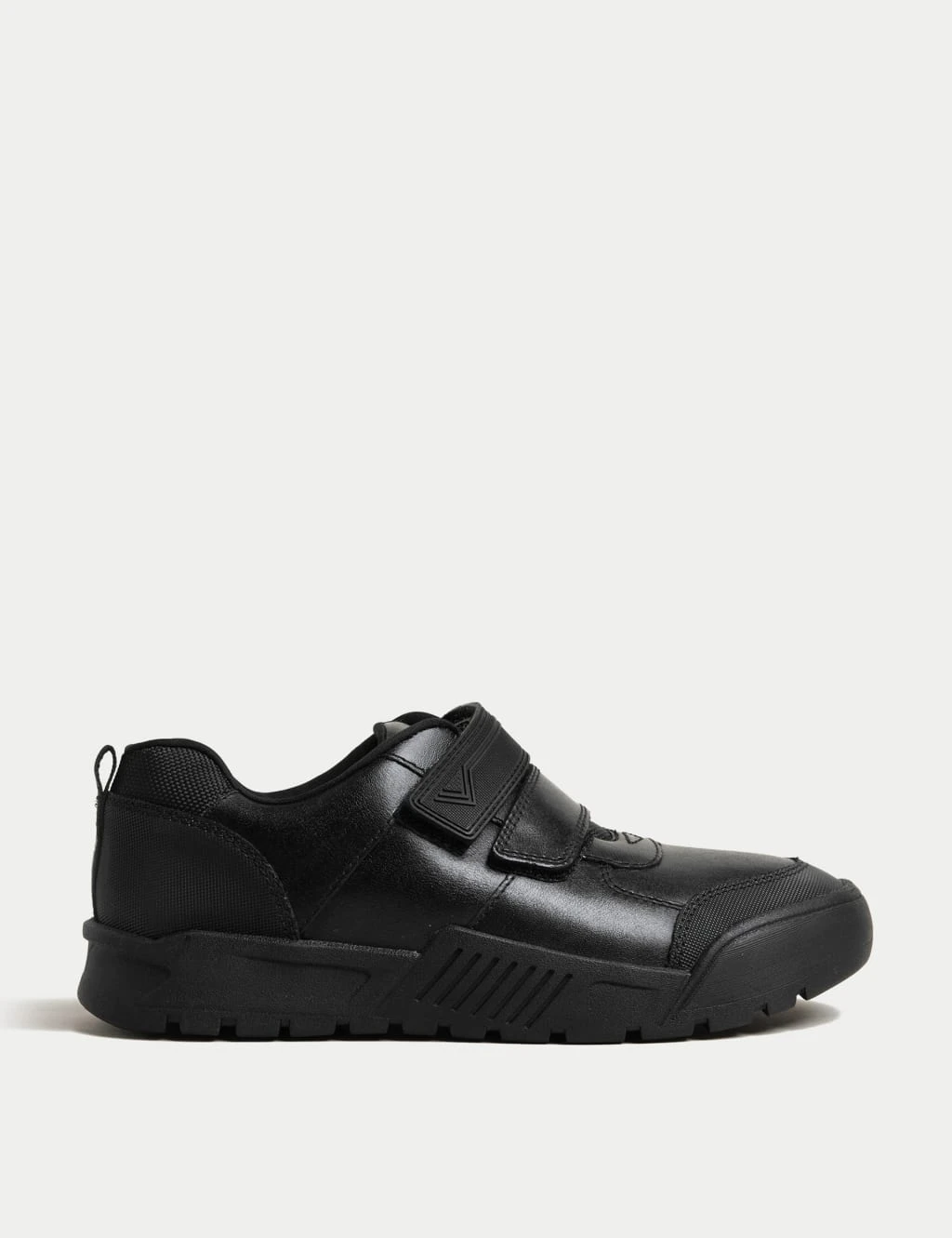 Keep growing feet comfy with these leather school shoes. Riptape fastening and a loop on the heel for easy on-off. A padded collar and squidgy underfoot foam support their feet. These comfy shoes are made with long-lasting scuff-resistant material and feature clever non-marking soles. Our Freshfeet™ technology keeps odours at bay. Made with recycled linings and responsibly sourced leather.