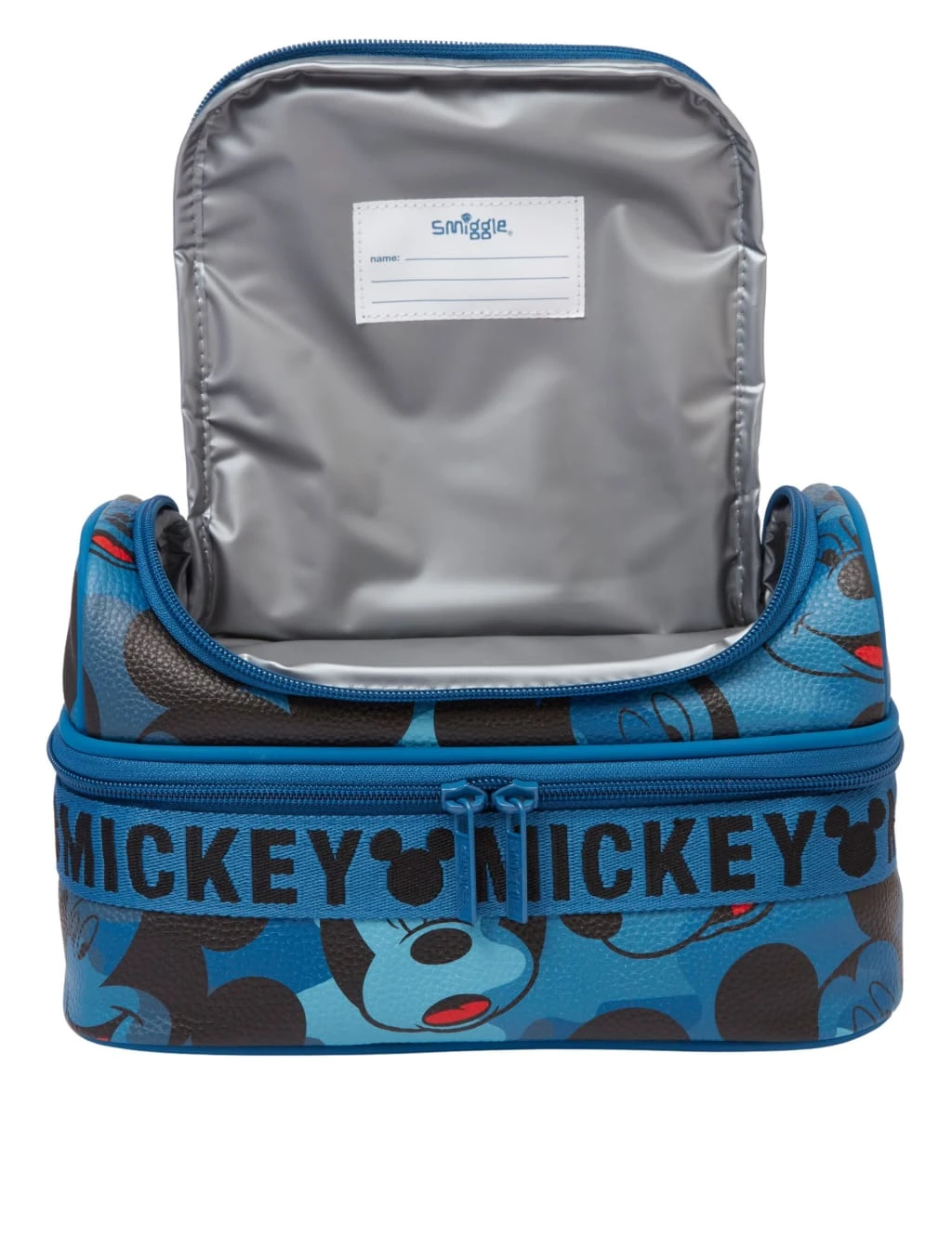 Add a playful touch to school breaks with this Smiggle lunch box, featuring a cool Mickey Mouse™ and camouflage print. It’s designed with zip fastenings and a carry handle for easy use. Besides the main compartment, there’s a top pocket for additional snacks. For extra detail, it’s stamped with the Mickey™ name around the middle.