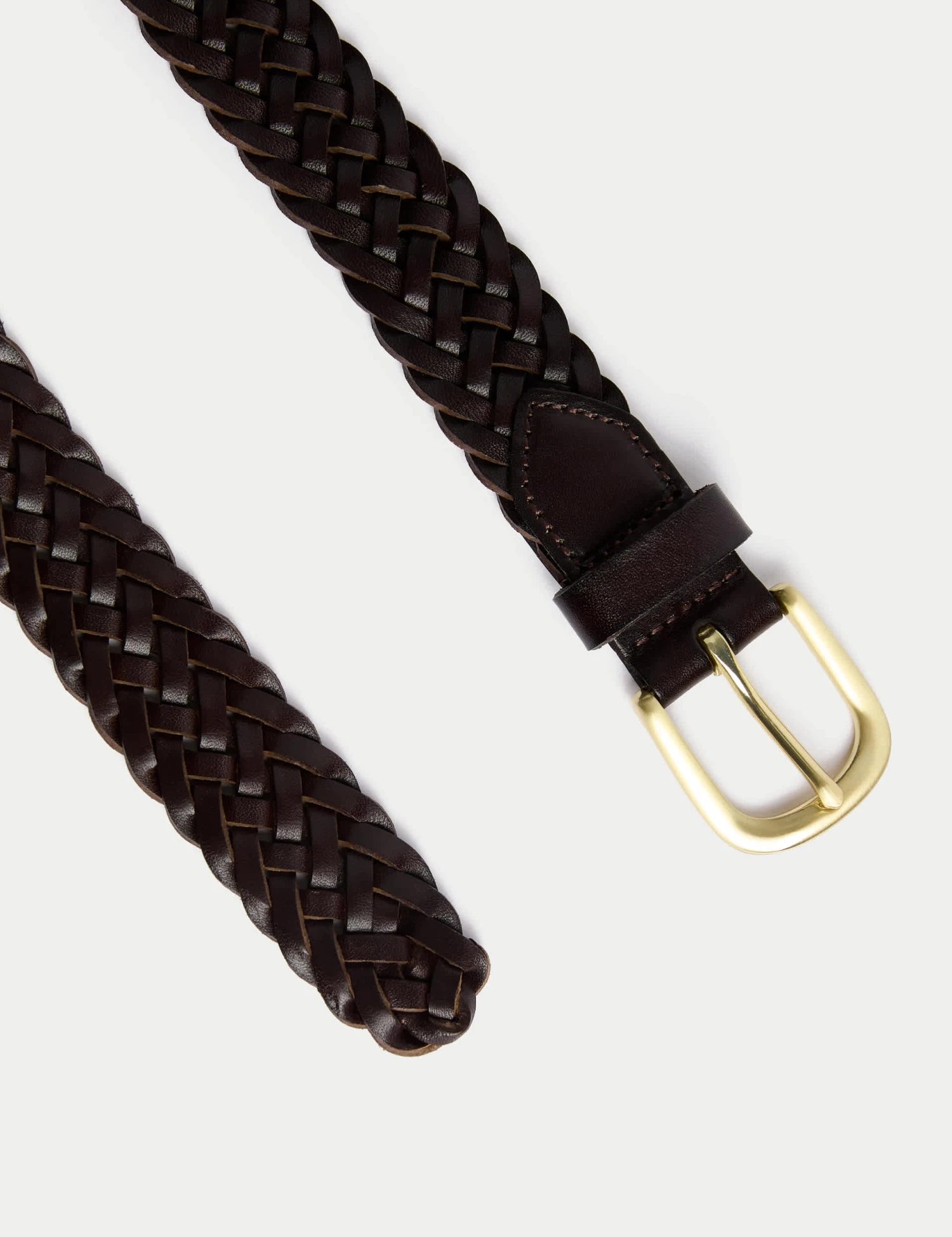 This genuine leather belt will bring a stylish look to any casual outfit. Rugged plaited design. Fastens securely with a polished metal buckle. M&S Collection: easy-to-wear wardrobe staples that combine classic and contemporary styles.