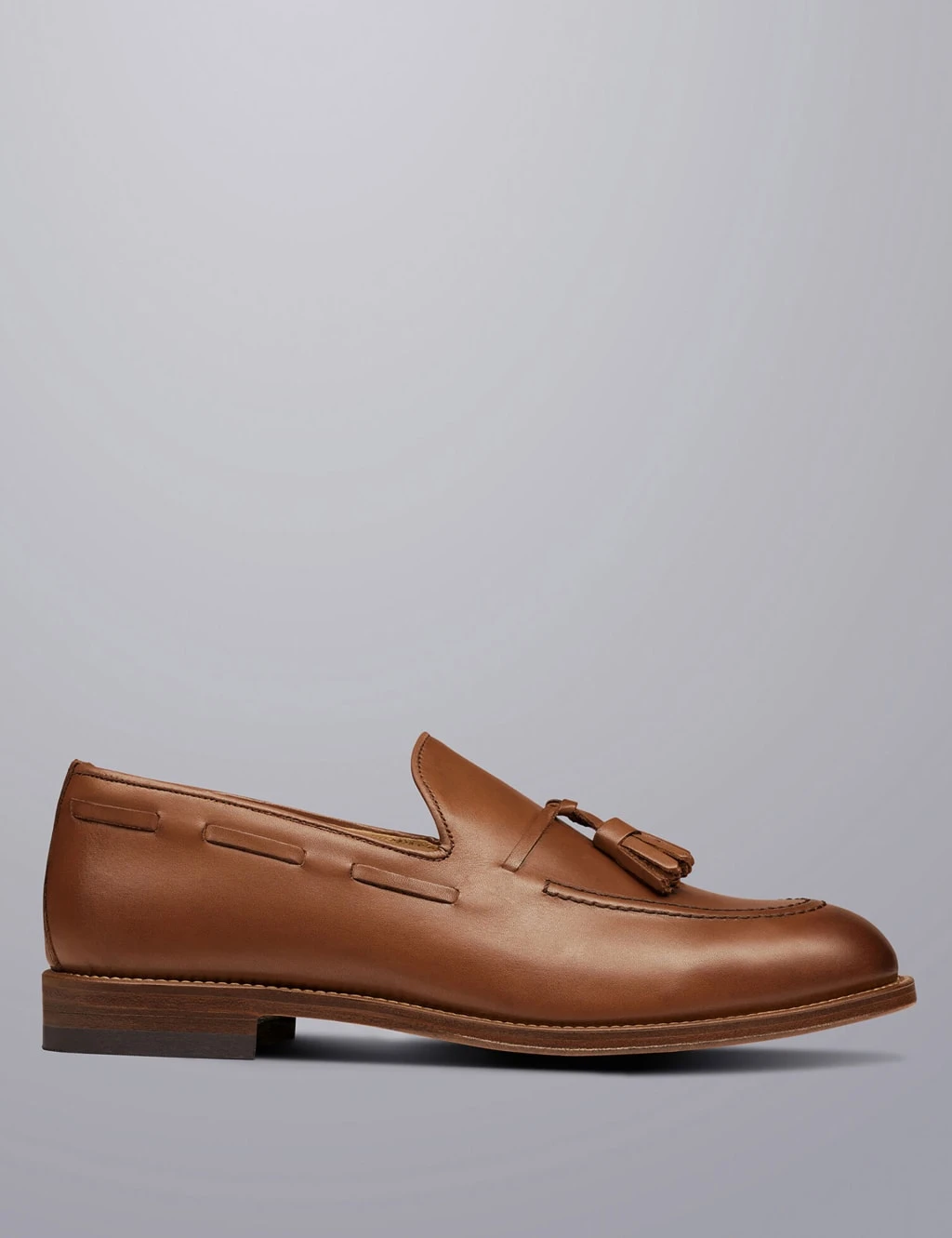 These statement leather loafers from Charles Tyrwhitt are an always-debonair choice. They’re designed to slip on with ease and feature a flexible nubuck sole with a durable rubber heel. An almond toe and tassels on the front complete the distinctive look.