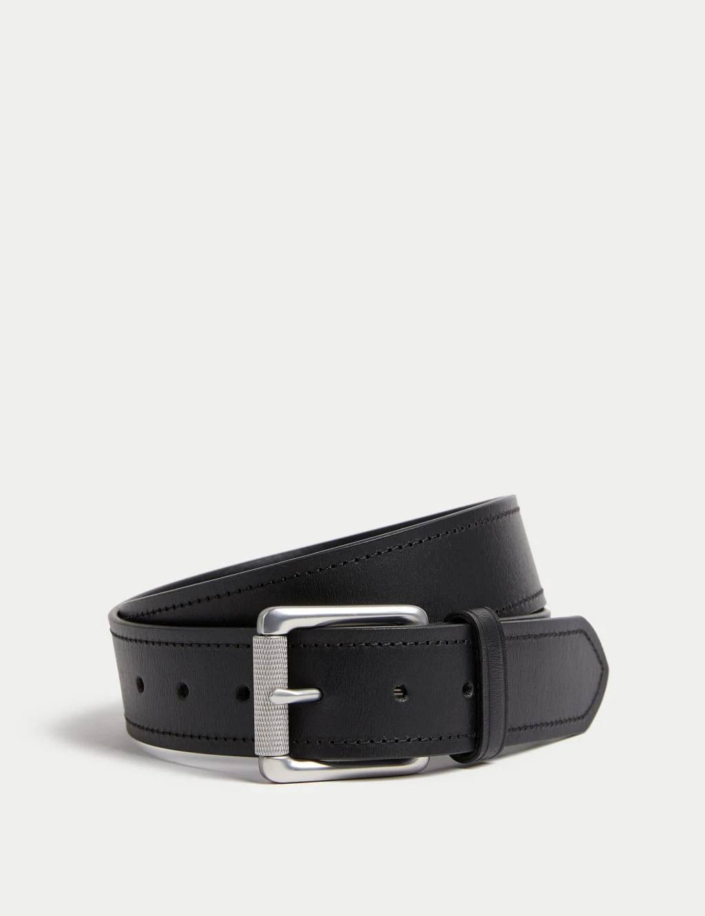 With its wider strap, this leather belt will add a contemporary twist to your casual outfits. It features stitched detailing for a premium look. The metal buckle fastening is adjustable for the perfect fit. M&S Collection: easy-to-wear wardrobe staples that combine classic and contemporary styles.