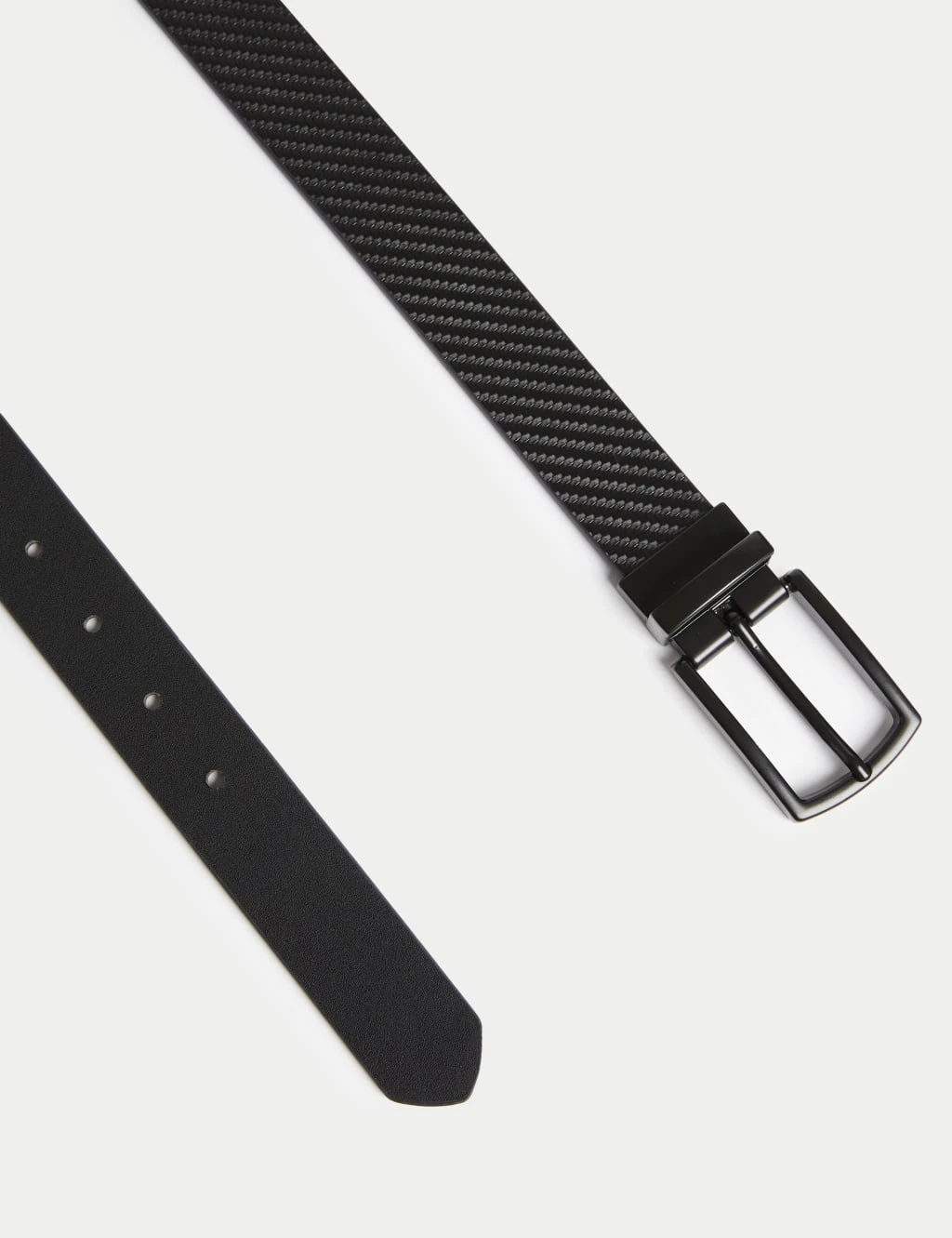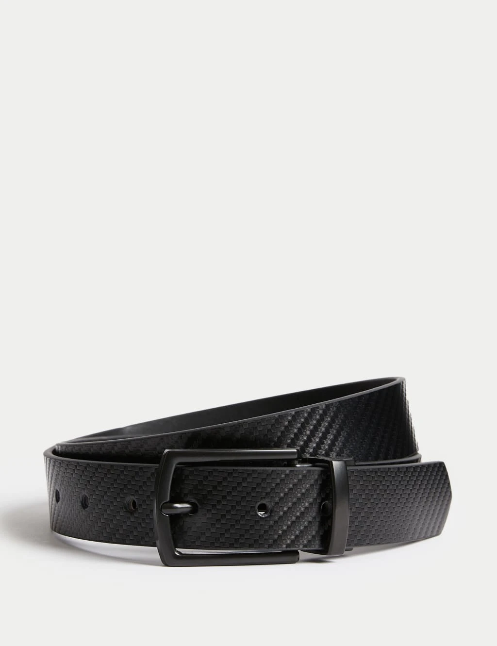 Add a smart finish to any outfit with this reversible coated leather belt. Versatile design features a textured look on one side and a smooth finish on the other. The tonal square buckle ensures a sleek look. M&S Collection: easy-to-wear wardrobe staples that combine classic and contemporary styles.