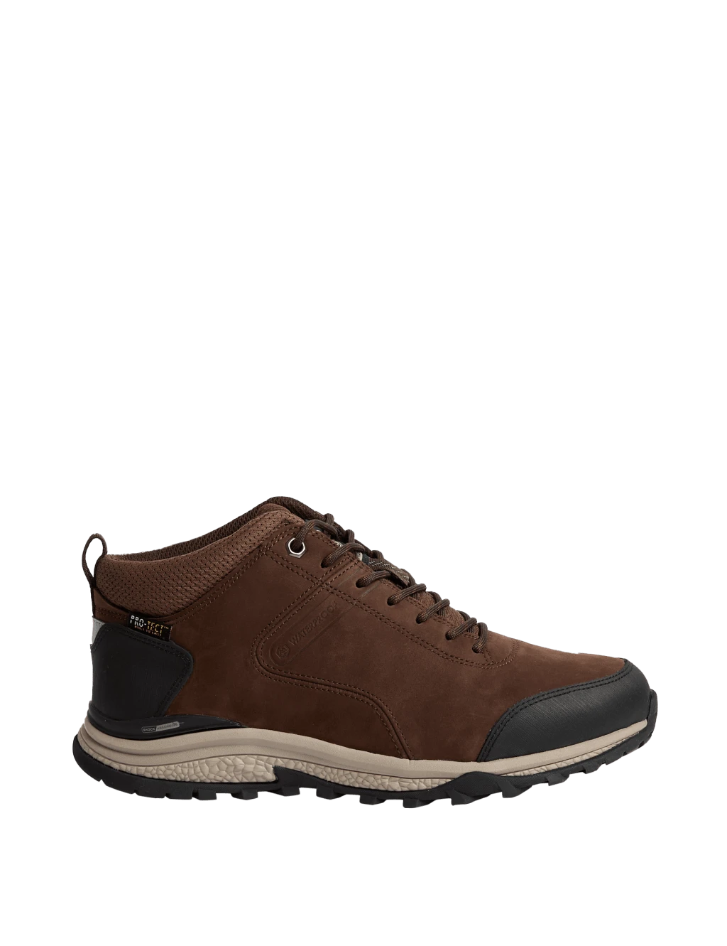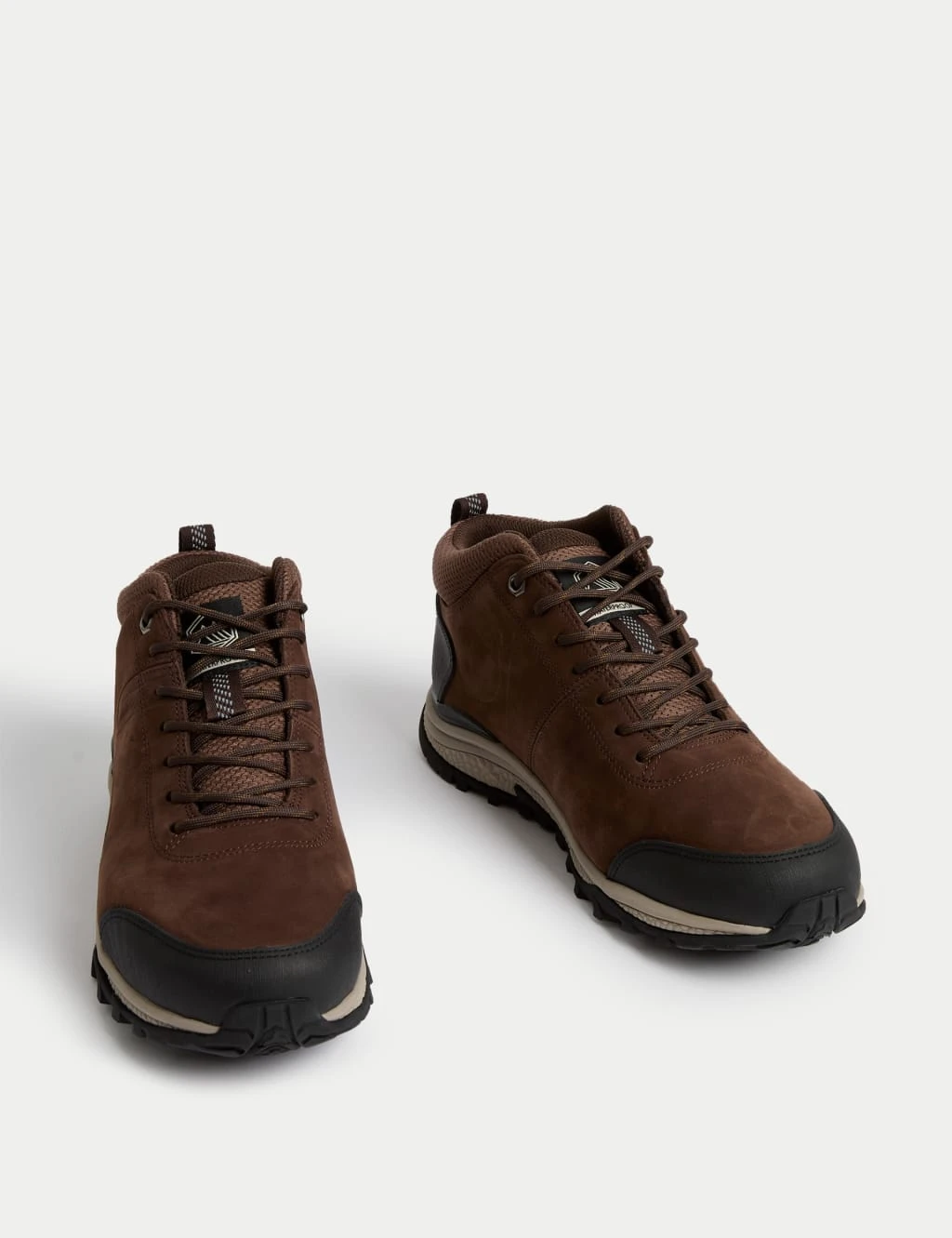 Made from supple genuine leather, these rugged waterproof TREK chukka walking boots will keep your feet warm and dry in the worst types of weather. Pull-tabs at the ankles for easy on-off. Secure lace-up style with holding bands and sturdy metal top eyelets to ensure a secure fit. Padded collar and tongue for comfort. Chunky soles with deep cleats give you a good grip on slippery surfaces, and they’re hard-wearing too.