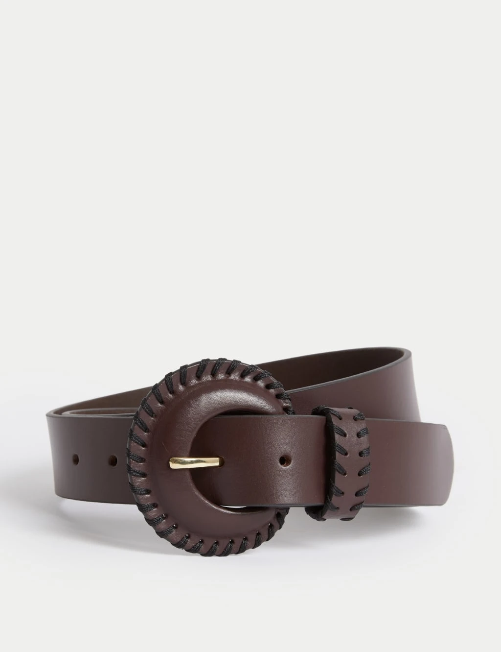 This genuine leather jeans belt is a versatile accessory for your wardrobe. It features statement whipstitch detailing on the half-moon buckle and keeper. M&S Collection: easy-to-wear wardrobe staples that combine classic and contemporary styles.