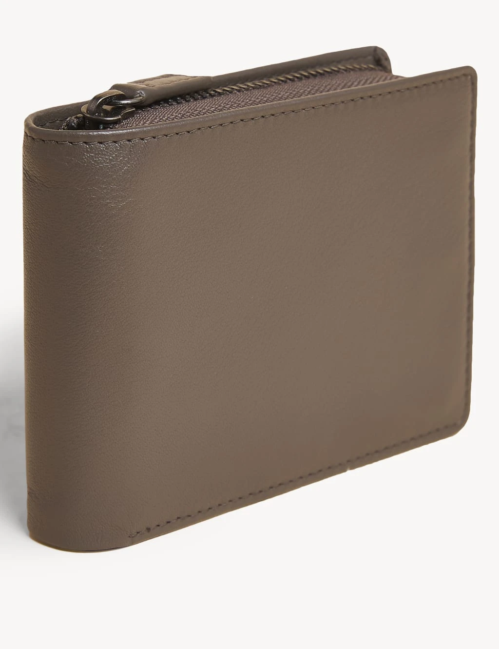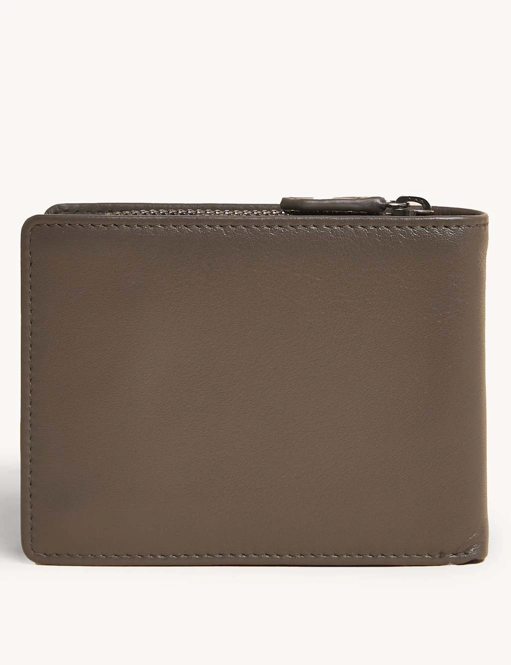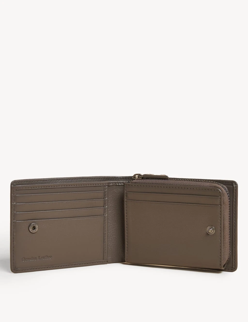 This stylish leather wallet from our Autograph range keeps your cash and cards secure on the move. Bi-fold design with zip coin pouch and one snap-button compartment, featuring six card slots. Sleek mock croc detailing on the inside. Our smart Cardsafe™ technology stops your cards from being read through the wallet. Made with responsibly sourced leather.