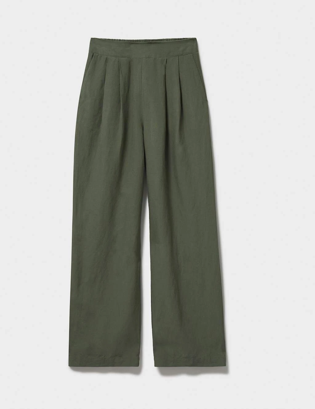 Breathable linen-blend fabric makes these Crew Clothing trousers ideal for balmy days. Wide legs accentuate the airy feel, while an elasticated mid-rise waist offers all-day comfort. Side pockets provide room for small essentials, while neat front pleats add a tailored touch.