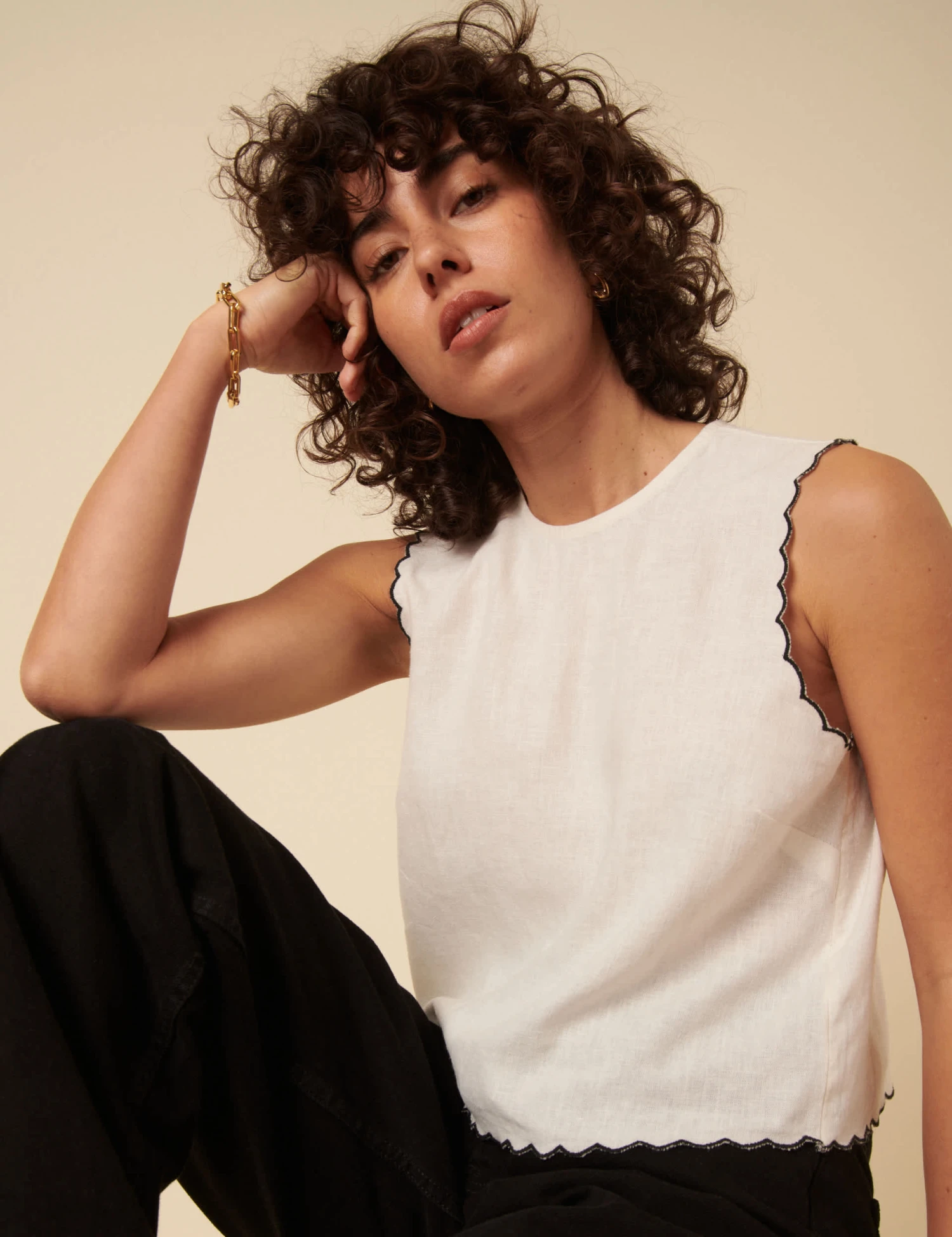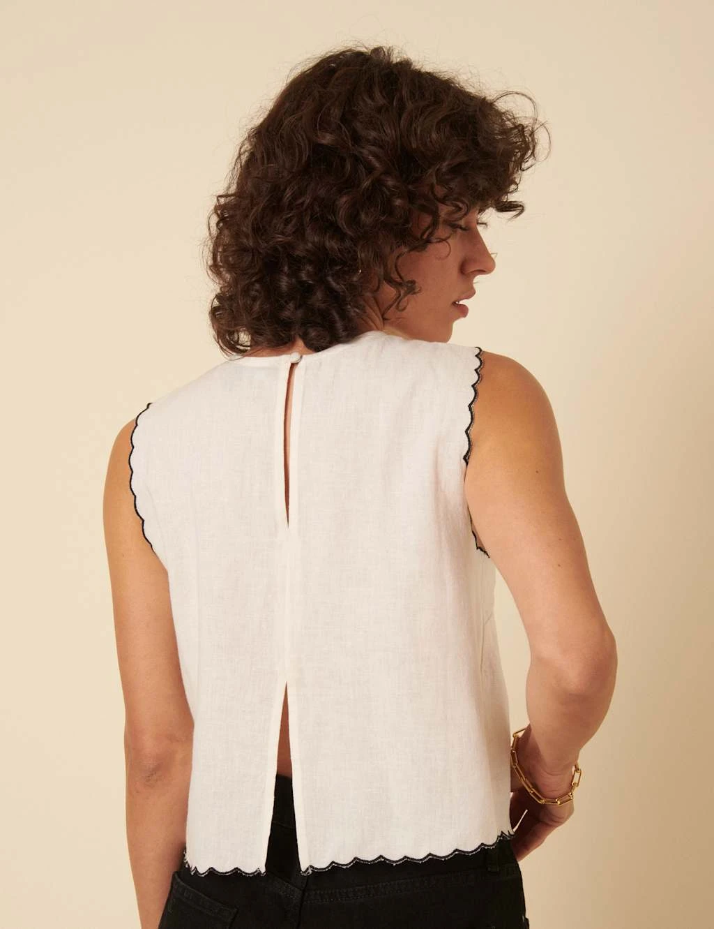 This linen-blend vest by Nobody’s Child is an effortless warm-weather style. It’s designed in a regular fit with a neat crew neckline. Contrast scallop-trim detailing at the collar and armholes add a feminine touch to this sleeveless style. It’s finished with a split at the back for easy movement, plus a keyhole button fastening at the neck.