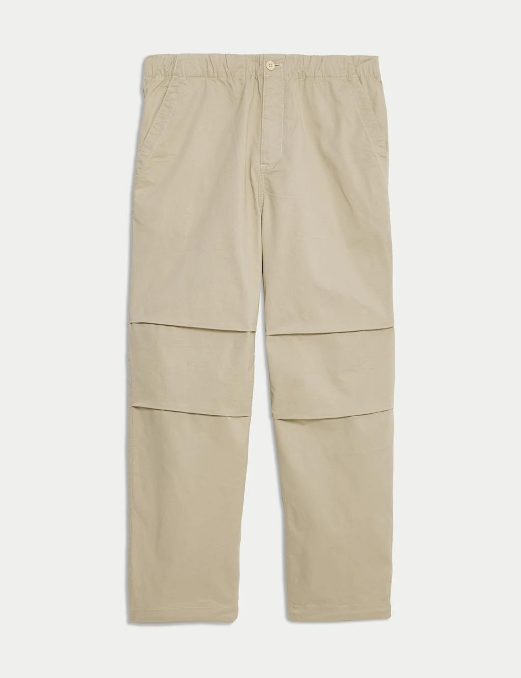 These lightweight cotton-rich parachute trousers are highly stylish and always comfortable. Made in a roomy loose fit. Added stretch ensures you can move easily in them. The elasticated waist is snug, and has a button and zip fastening to keep these design classics securely in place. They have pockets to hold your personal items and valuables, too. M&S Collection: easy-to-wear wardrobe staples that combine classic and contemporary styles.