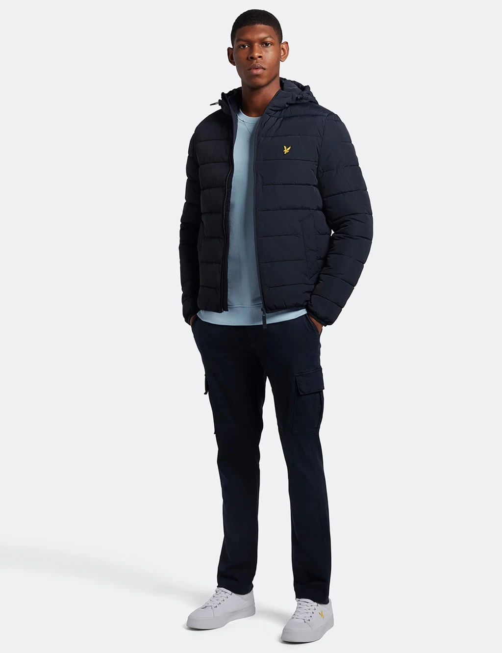 Cover up on chilly days in this lightweight puffer jacket from Lyle & Scott. It’s designed in a comfy regular fit with a funnel neck and toggle drawstring hood for extra cosiness. The elasticated hem and cuffs offer a snug feel, while side pockets are ideal for stashing essentials. This padded style is complete with an embroidered golden eagle for a signature touch. Made with recycled polyester.