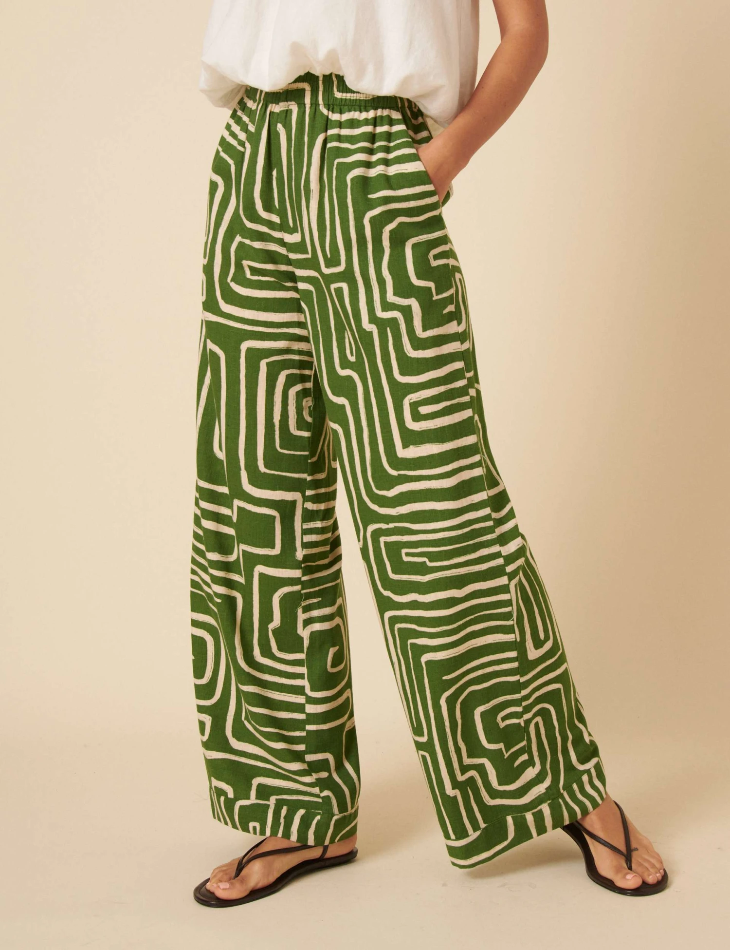 These trousers from Nobody’s Child are cut from lyocell-rich fabric with linen for a fresh feel. They’re designed in a flattering wide-leg shape, with an elasticated high-rise waistband for comfort. The bold geometric print makes a statement, while side pockets are a practical touch.