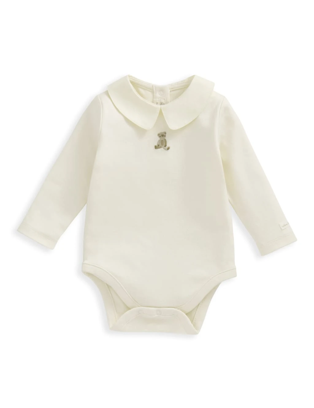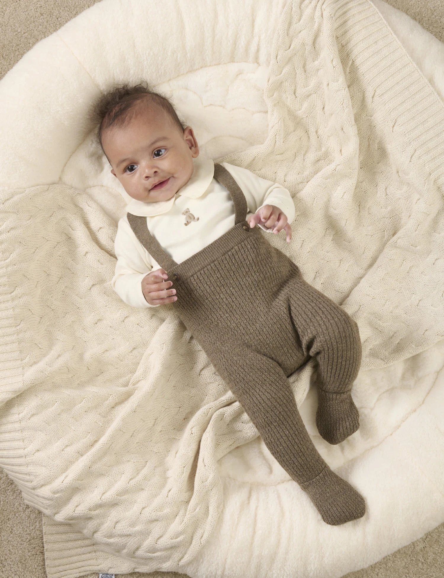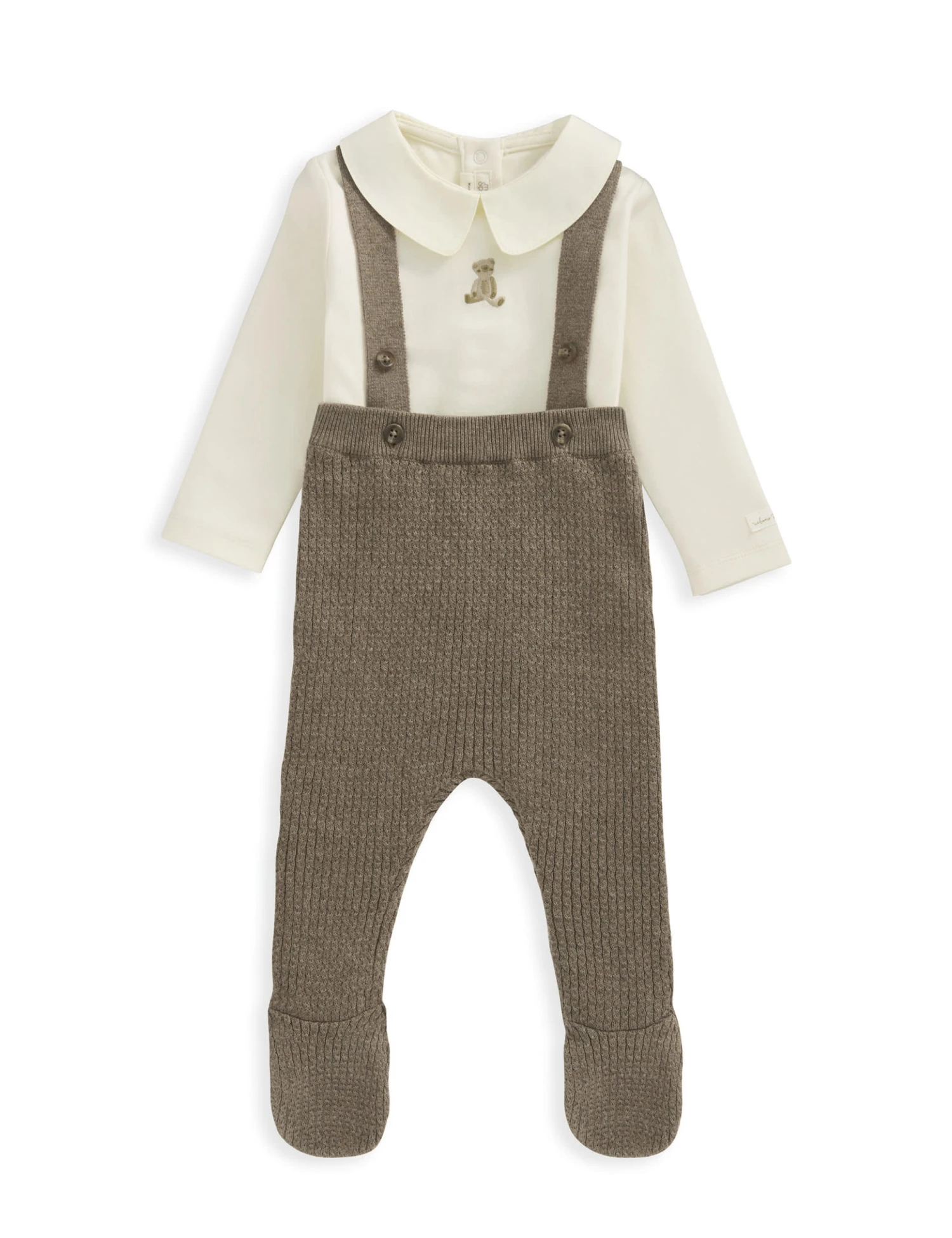 Get your little one ready for adventures in this pure cotton two-piece outfit from Mamas & Papas. The long-sleeved bodysuit features a smart collar, popper closures for easy on-off, and an adorable teddy bear embroidered on the front. Layer it with the knitted dungarees, which feature an adjustable button closure allowing room for growth.