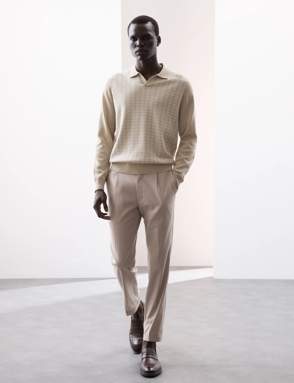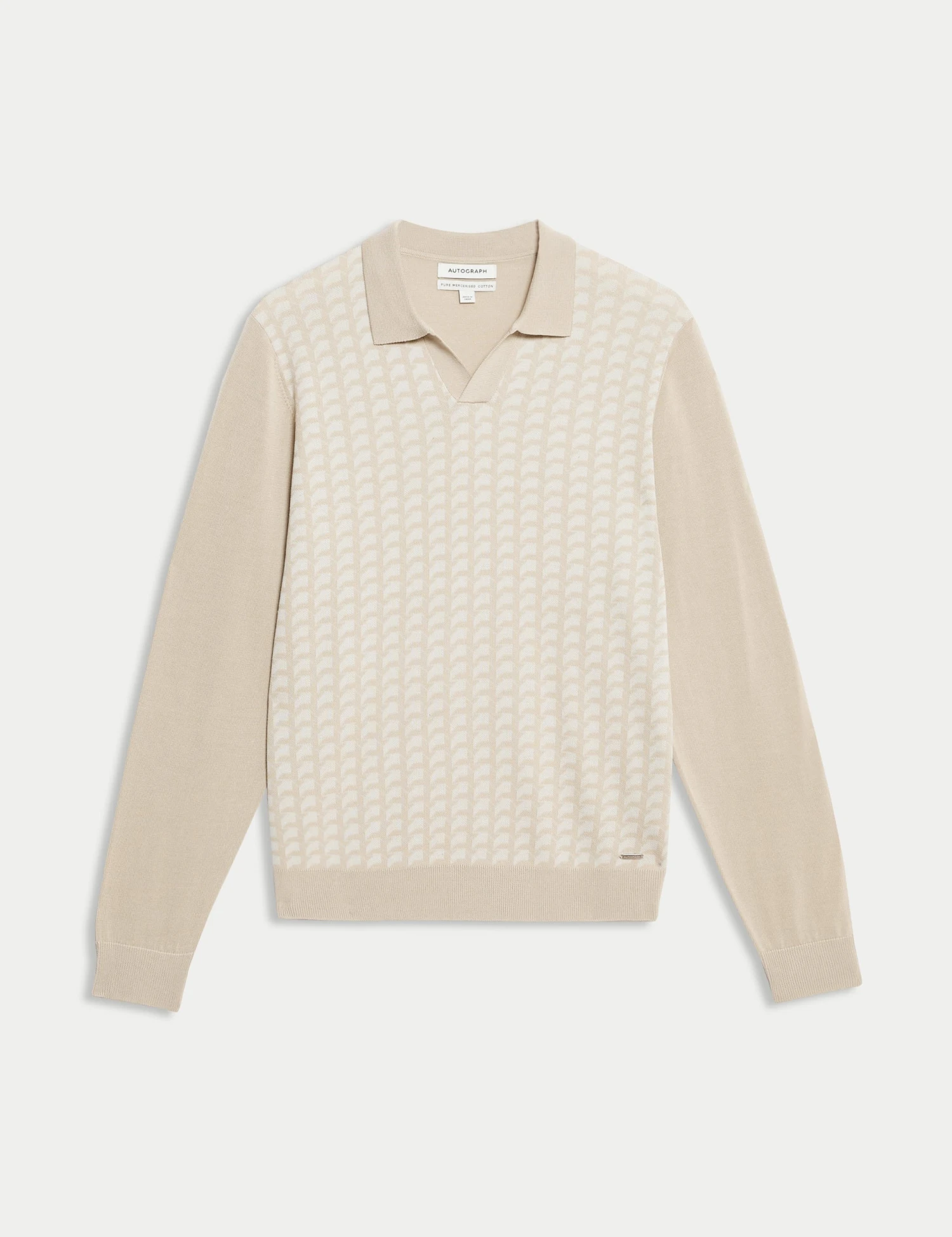 With its mercerised cotton fabric, this Autograph knitted polo shirt brings a touch of luxury to your casual wardrobe. It’s made in a comfy regular fit with long sleeves and an open collared neck for a laid-back look. The geometric pattern gives a nod to retro styles. Autograph: premium investment pieces featuring contemporary cuts and refined finishing touches.