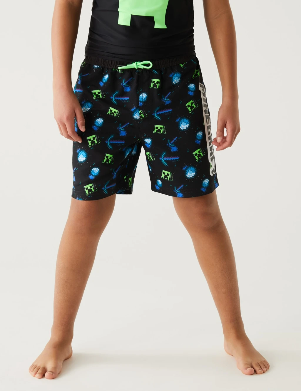 Minecraft™ fans will love splashing around in these swim shorts. Designed in a comfy regular fit with a drawstring waistband. Made from chlorine-resistant fabric for longer wear. Our Sun Smart UPF50+ technology is endorsed by the British Skin Foundation and helps to protect against harmful UV rays.