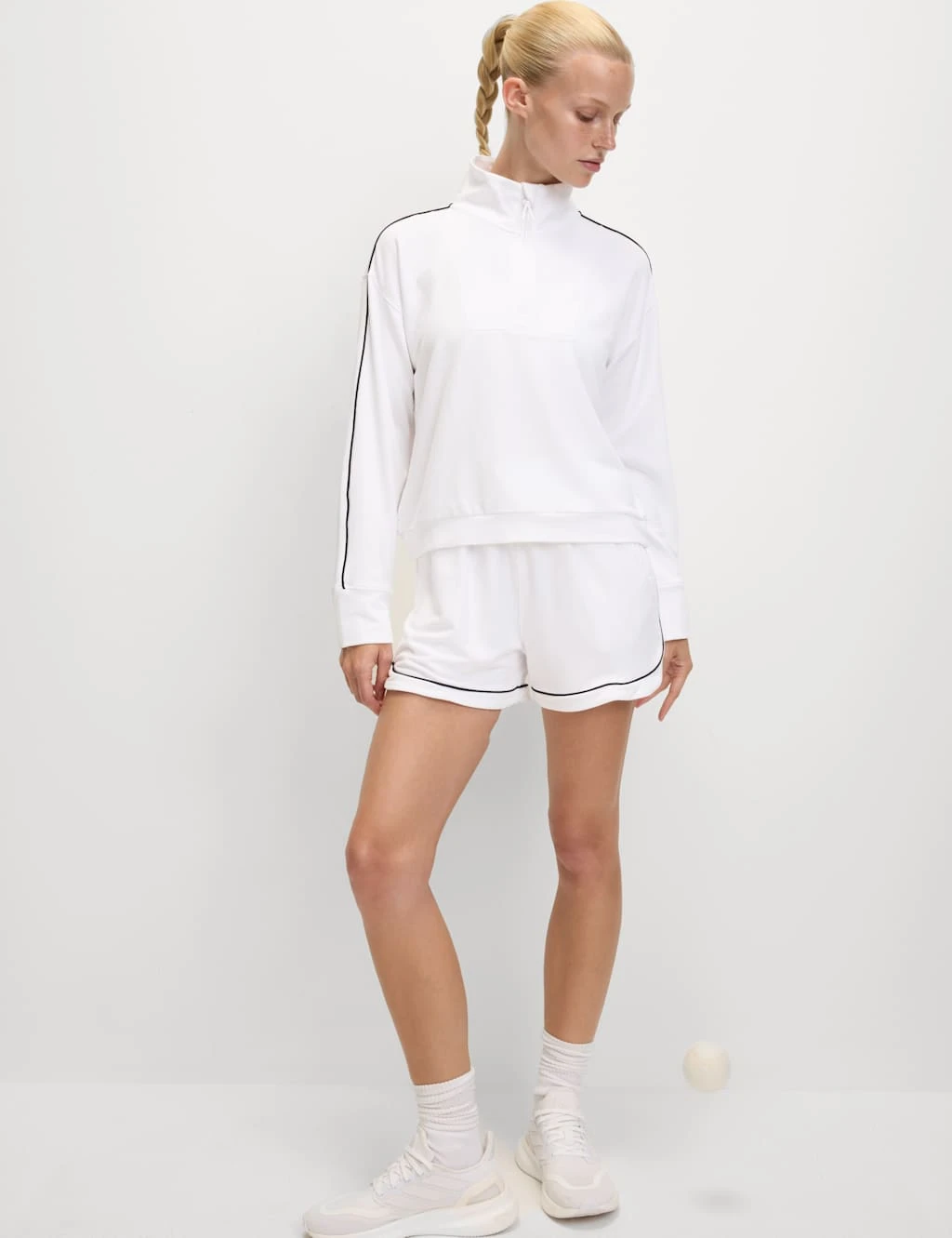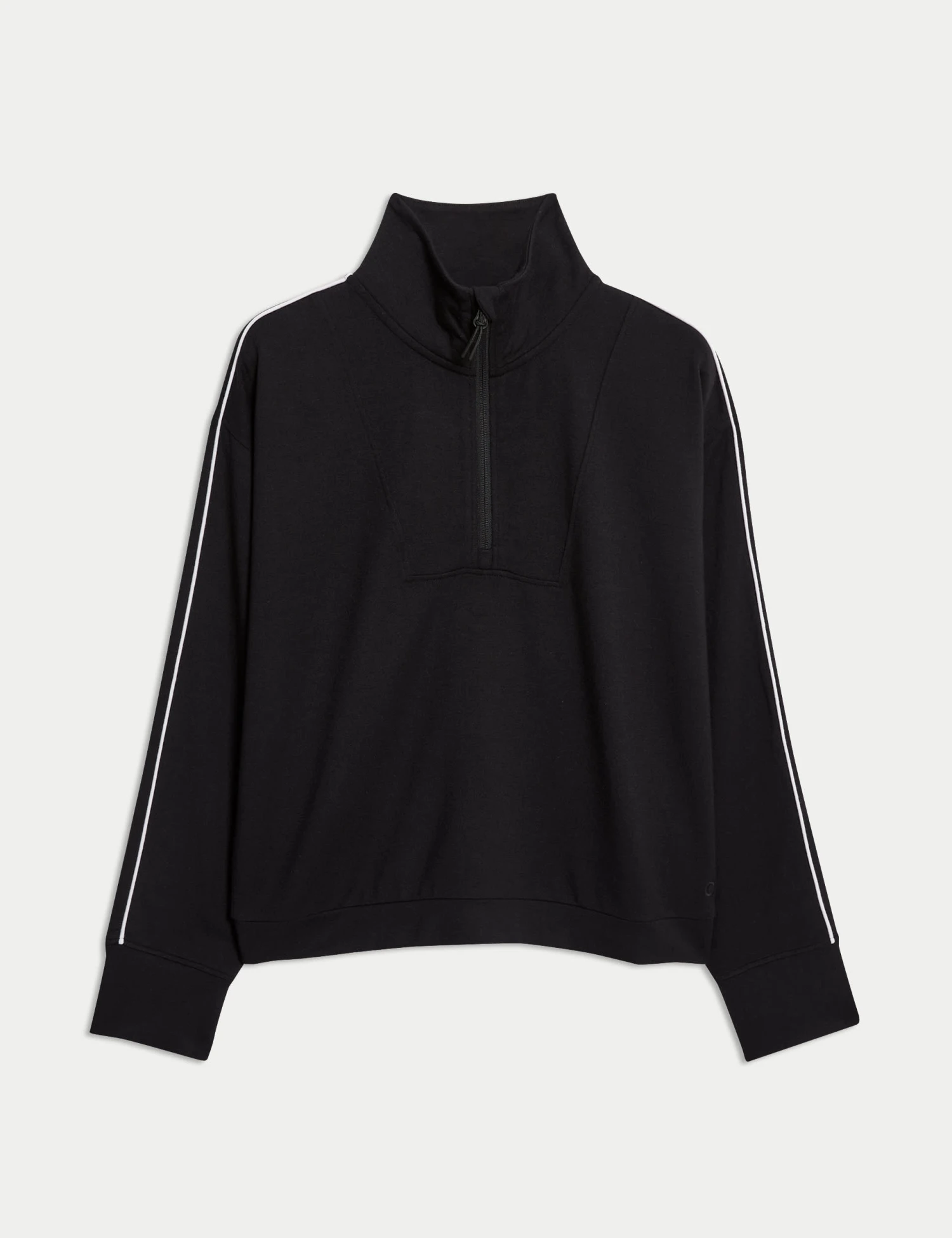This breathable modal-rich top from our Goodmove collection is perfect for warming up or cooling down. It’s designed in a comfy relaxed fit, with a half-zip fastening at the cosy funnel neckline. The supersoft fabric is quick-drying and moisture-wicking to keep you feeling fresh. A neat piped trim runs down the long sleeves for a sleek finish.