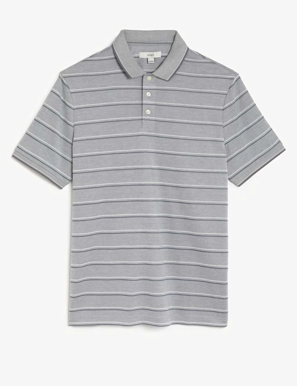 Laid-back days were made for this modal-rich polo shirt. Comfortable regular fit, cut from super soft fabric. Design features breezy short sleeves, a button fastening and a classic collared neck. A striped print adds a timeless feel.