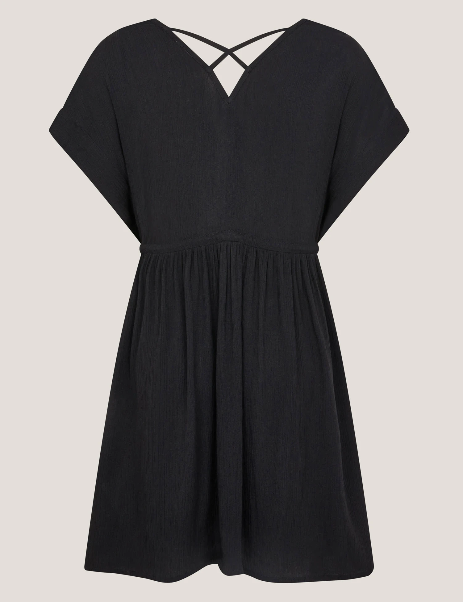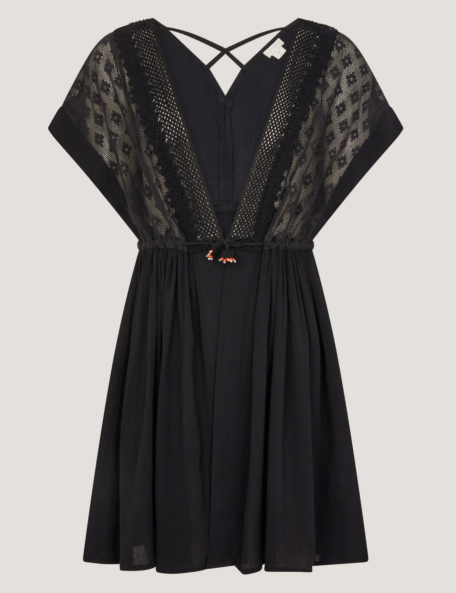 This pure cotton kaftan from Monsoon is perfect for throwing on after a dip in the pool. It’s made in a comfy regular fit, with an elegant V-neckline and short sleeves. The adjustable tie waist features colourful beading on the closure. Floral lace and embroidery detailing add playful finishing touches.