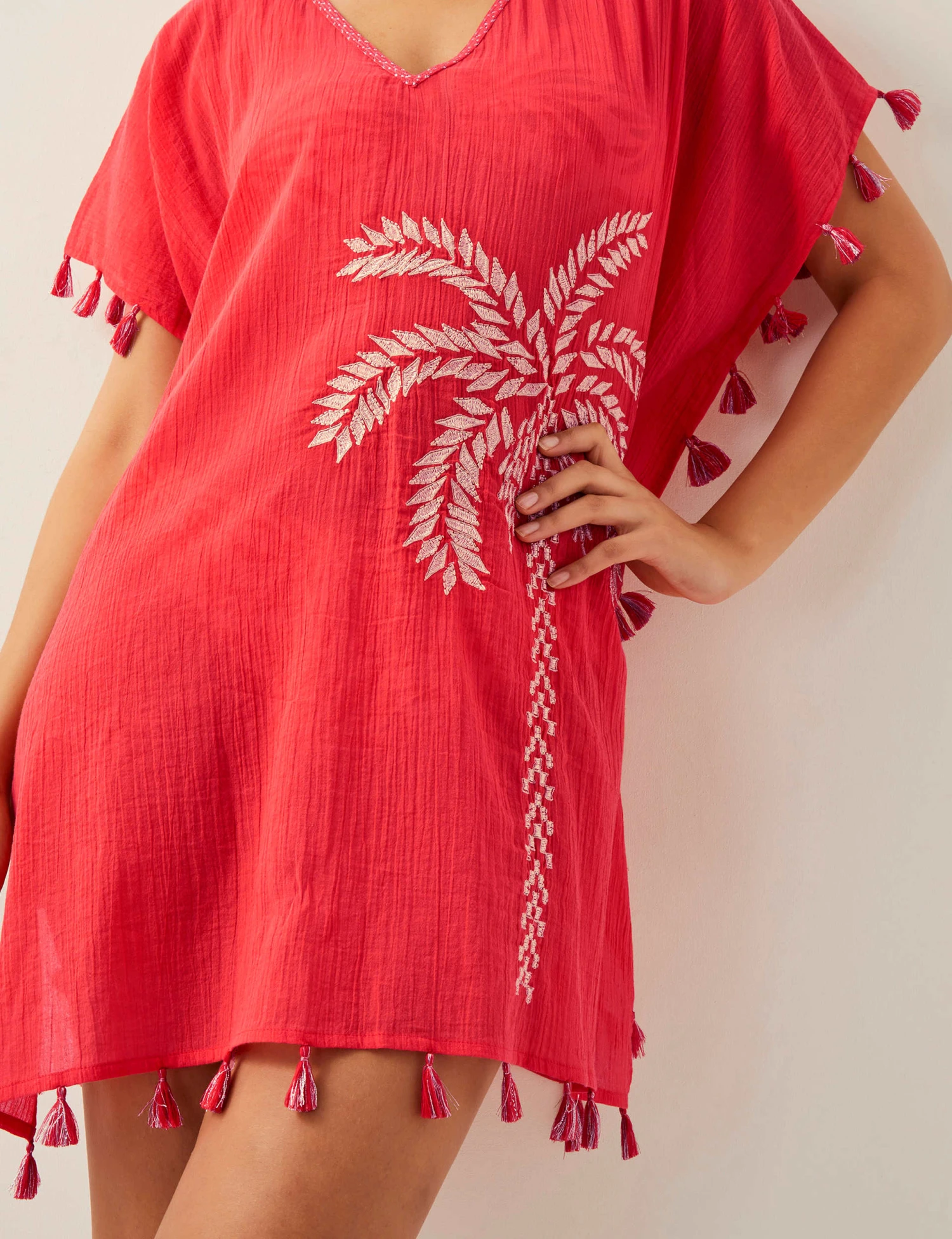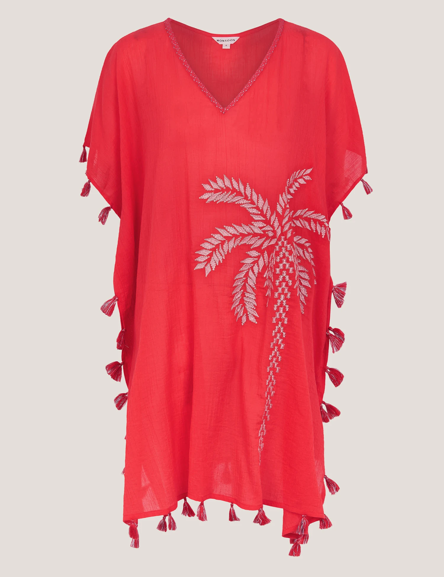 This pure cotton beach dress from Monsoon is the perfect cover-up for days by the pool. It’s designed in an easy regular fit, with a flattering knee-length hem. The V-neckline and short sleeves add to its laidback appeal. This versatile beach cover-up is complete with stylish palm tree embroidery and tassels for a playful feel.